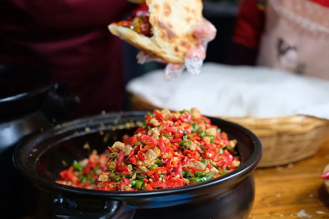 ▲给陕西人一个馍,他能把一盘青椒炒肉都夹完。 图/图虫·创意