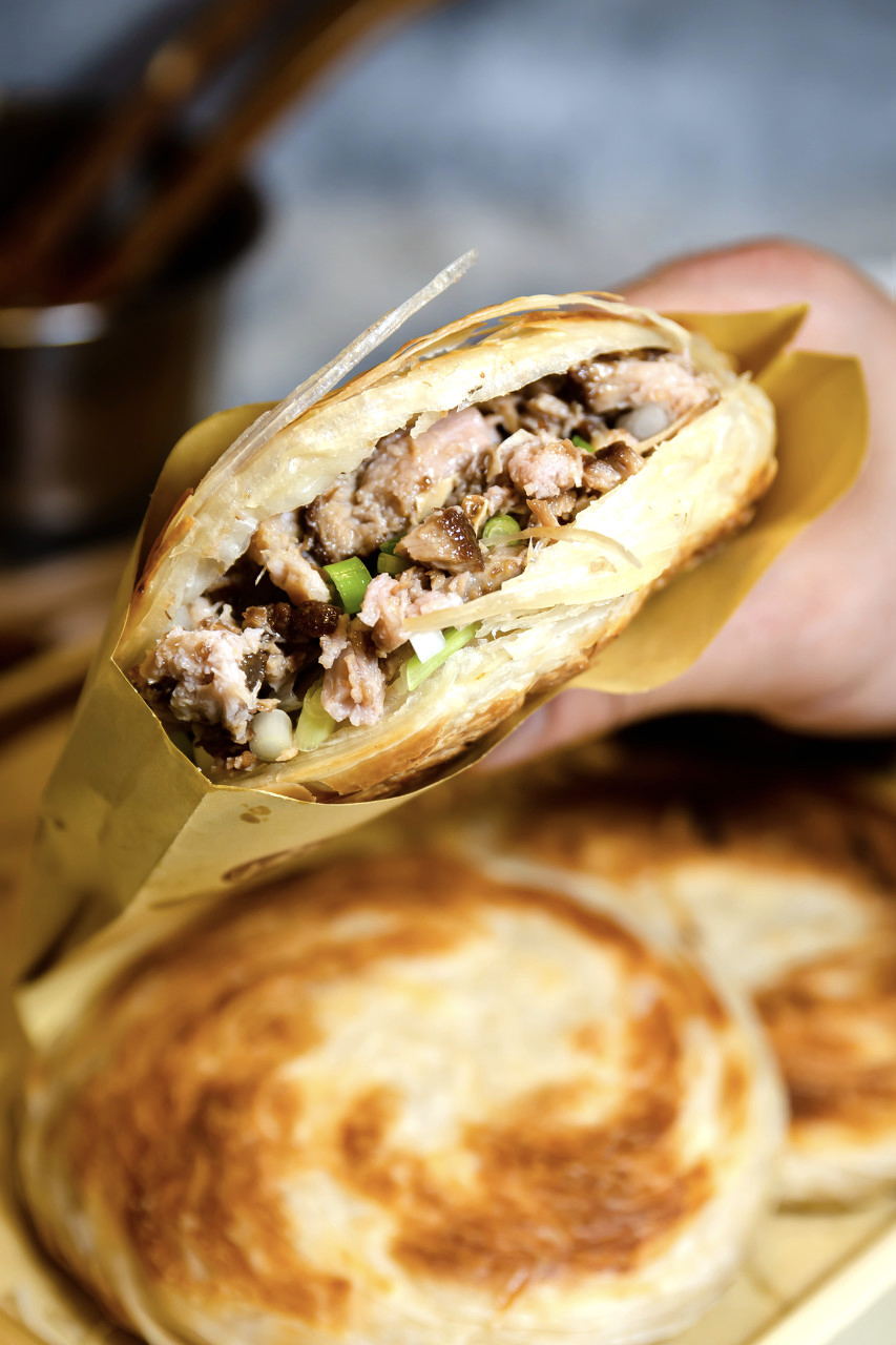▲腊牛肉夹馍,再配一碗肉丸胡辣汤,陕西人的一天就开始了 。 图/图虫·创意