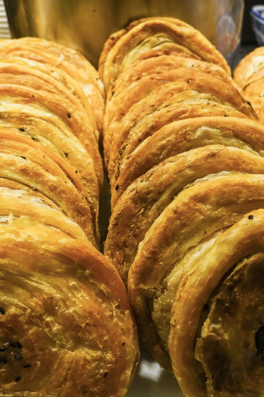 今天,北方专业的面点师傅,都要严格遵守这个“行规”:火烧不放芝麻,放芝麻就不是火烧。但是,偶尔也会有几个“乱入者”。比如,山东有名的“范镇火烧”就是明目张胆的典型。据说,“范镇火烧”以前叫“徐家烧饼”来着。