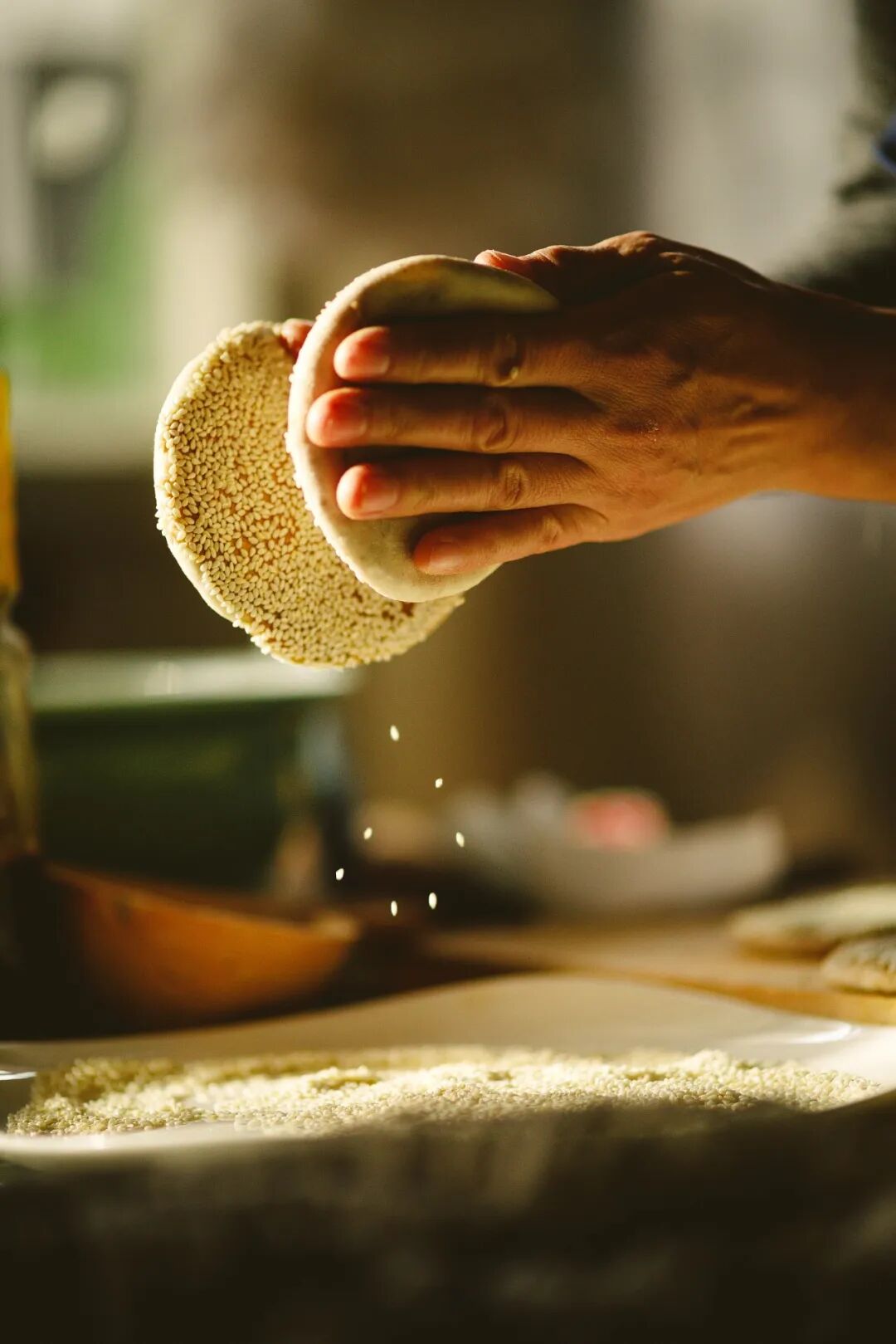 不管世事如何变迁,烧饼和芝麻初心不变。西域的烧饼传到全国各地之后,被改造得“五花八门”:带馅的、不带馅的、甜的、咸的、发面的、死面的、半发面的、酥的、脆的、软的、硬的……与芝麻始终不离不弃。京津人最爱吃的麻酱烧饼,不但要黏上芝麻,还要用麻酱和面,算是最照顾芝麻的一种烧饼了。