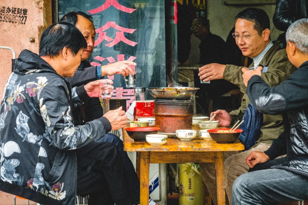 宵夜时间还没过多久,早酒馆子接力。约上好友涌进早酒馆子,架起一个牛肉锅,点几个卤菜,倒上白酒,再来一碗早堂面。与其说过的是酒瘾,不如说是为了交友。