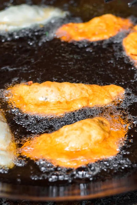 鸡冠饺正在油锅里洗澡澡。