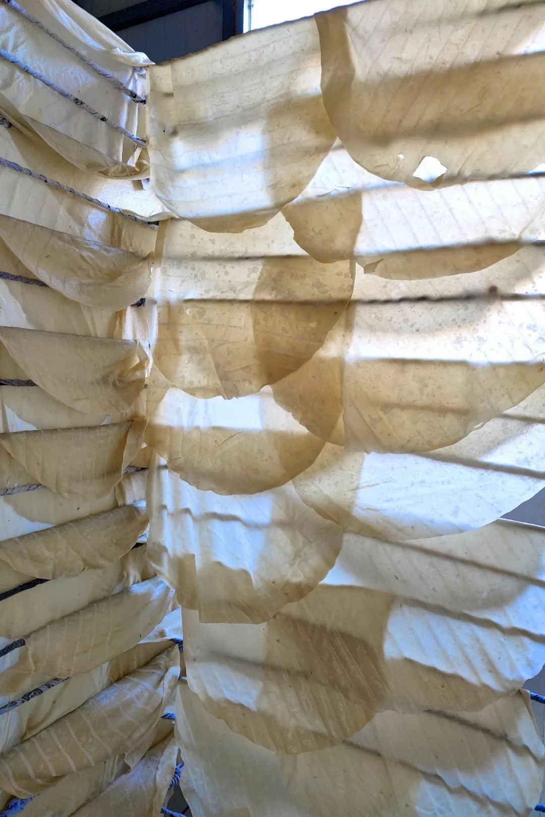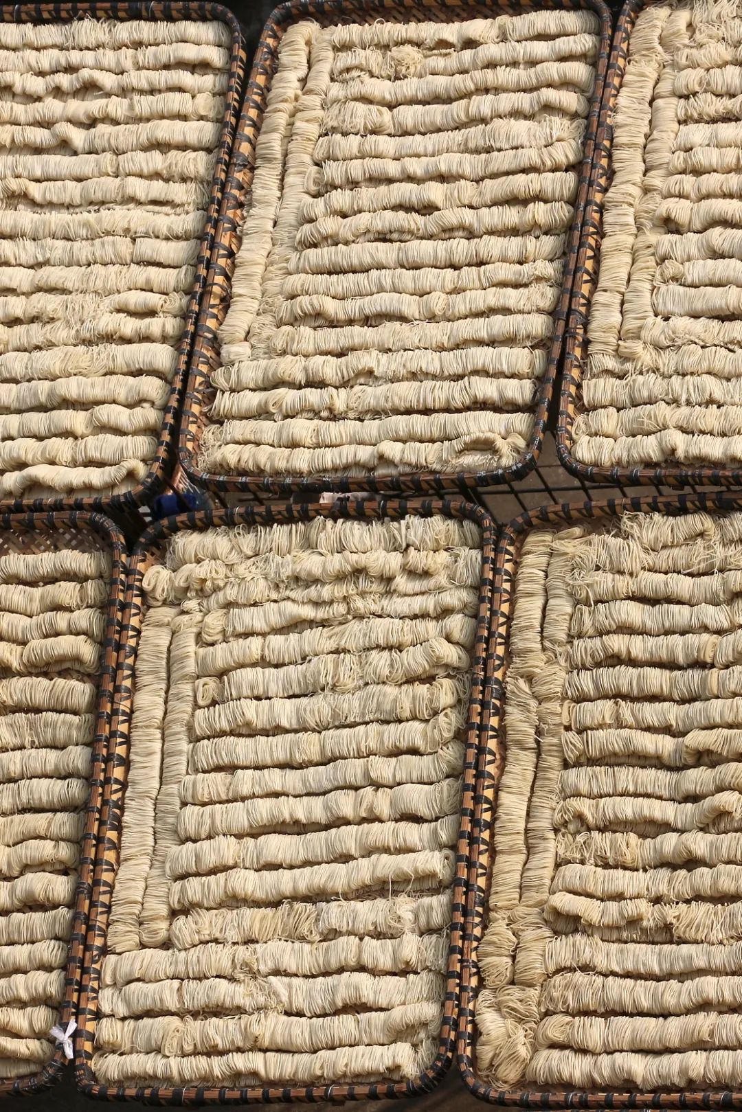 云梦鱼面被切成条后,进行晾晒。