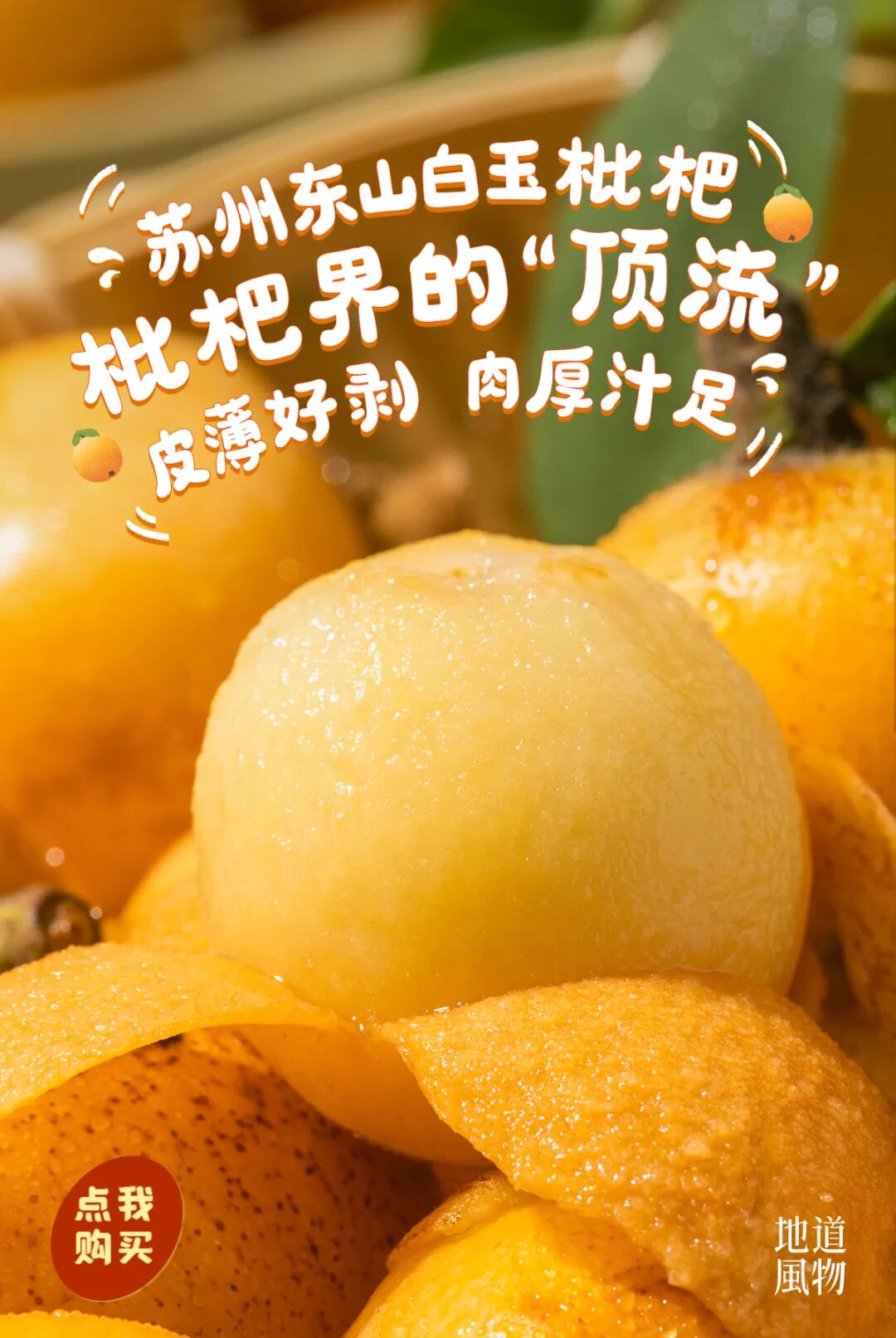 苏州东山白玉枇杷,是每年这个季节,老饕们都要“抢”的宝藏水果。白玉枇杷的甜度可以达到16-19,每一颗都那么甘甜,那么水润,带着浓郁的果香,真真是值得被人偏爱的。