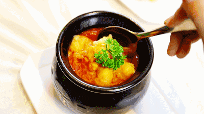 类似于中俄混血的红菜汤,罐虾同样以西红柿作为底料。罐虾的做法,并不复杂。裹上鸡蛋、面粉的虾仁,过热油炸熟后,放入以西红柿为底料的焖烧杯中,最后加入芹菜、胡萝卜等配菜,焖制一小时左右即可。