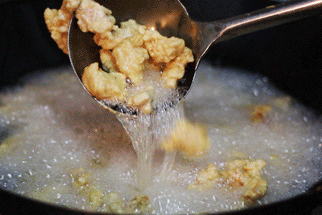 不同于锅包肉的“原教旨主义”之争,溜肉段在黑吉辽的做法基本一致,唯有配菜略有差异。“溜”,是鲁菜的传统做法。但凡“溜”的菜,一般是先炸后挂浆,而后再放入油锅复炸。