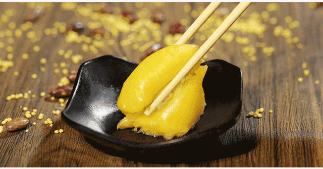 “黄米糕,黏又黏,红芸豆,撒上面。”在满族歌曲中,粘豆包的出镜率颇高。软糯的粘豆包,深受东北小朋友的喜爱。粘豆包的外衣多以黄米面制作,加入蜂蜜调味,而后将绵细的红豆沙包裹在内。为防止粘连,制作好的粘豆包,多由苏子叶或者梨叶包裹。