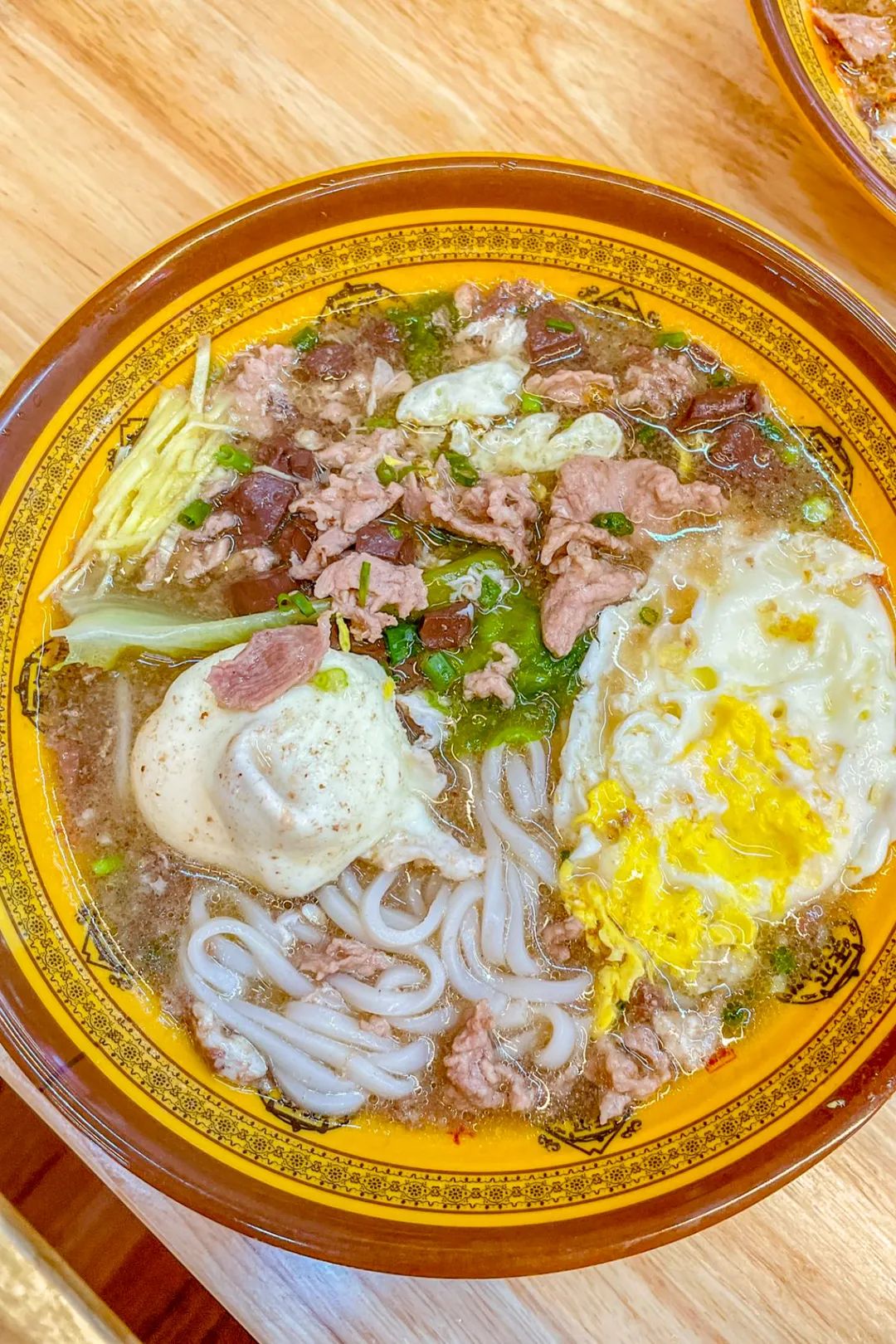 永州的圆粉,最适合拿来拌。炖着猪骨、牛肉的汤锅里,先是八角、桂皮、小茴香,再加入三花酒、罗汉果,这锅卤水便是永州卤粉的精气神。一锅卤水,可卤万物,牛肉、鸡蛋、豆腐,再加点锅烧(脆皮猪颈肉),西边的邻居桂林,也喜欢这样。