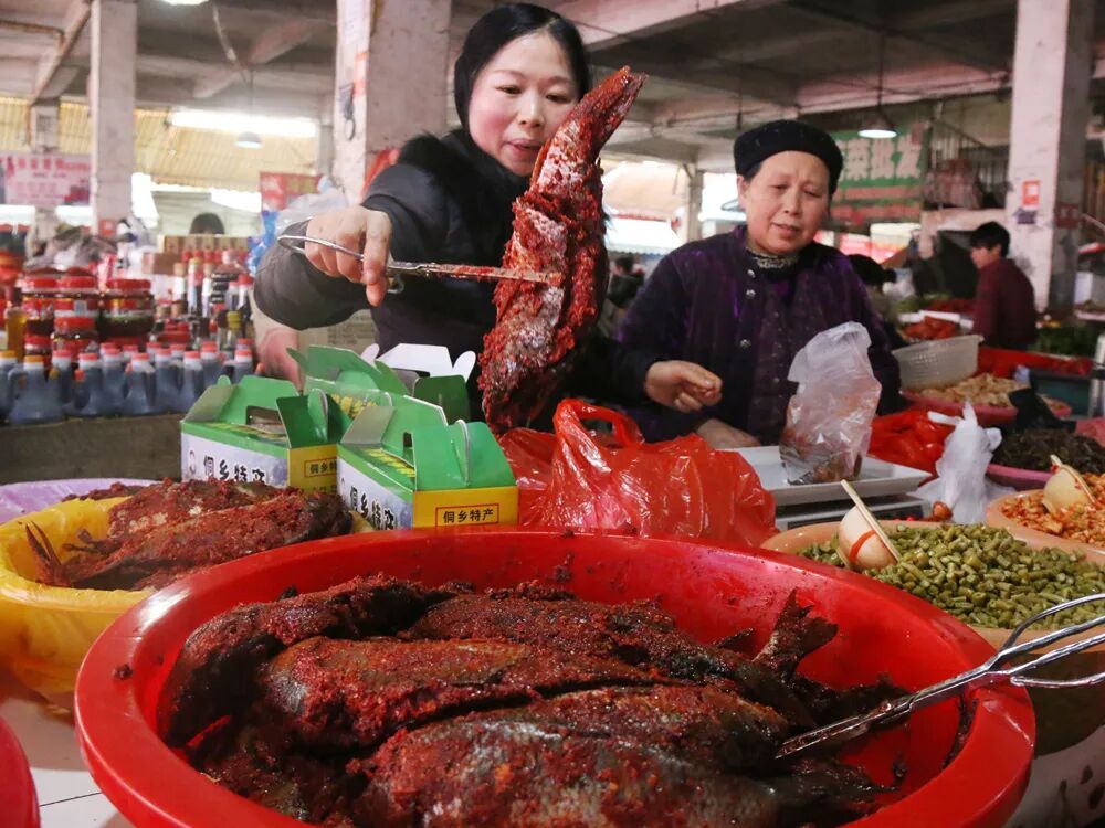 湘皖两地,大名鼎鼎的臭鳜鱼,也是压腌派的真传弟子。最初的臭鳜鱼,本是鱼贩们为了运输长江的新鲜鳜鱼,一层鱼、一层盐,层层叠叠码一桶的无奈之举。结果,等鱼运进安徽山村,人们发现鳜鱼在臭烘烘的外表下,反而藏着鲜美的灵魂。