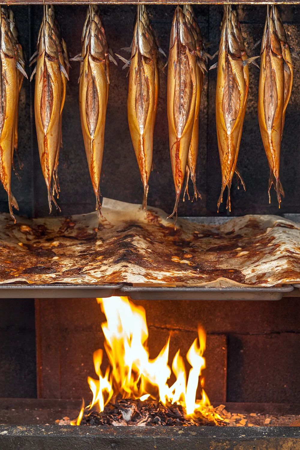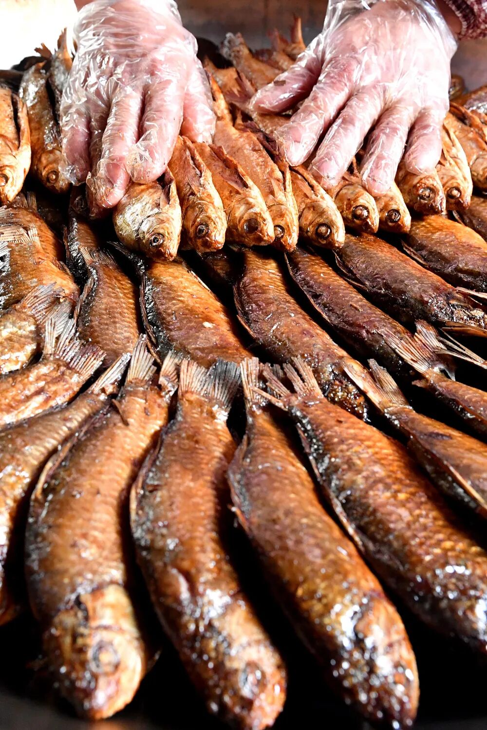 冀系的白洋淀熏鱼,虽身处华北,却多少沾染了些江南气质。白糖加小米的熏料,不仅让这片北方鱼米之乡萦绕一丝香甜。此外,还有山东的熏鲅鱼,黑龙江的冷熏马哈鱼,内蒙古先蒸后熏的磴口熏鱼,新疆春熏秋食的乌伦古湖熏鱼……它们都是不拘小节,不那么在乎熏料的豪放系熏鱼,香才是正道。
