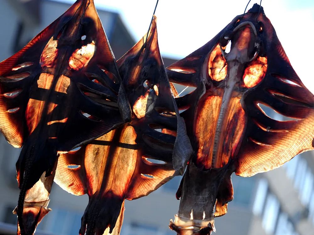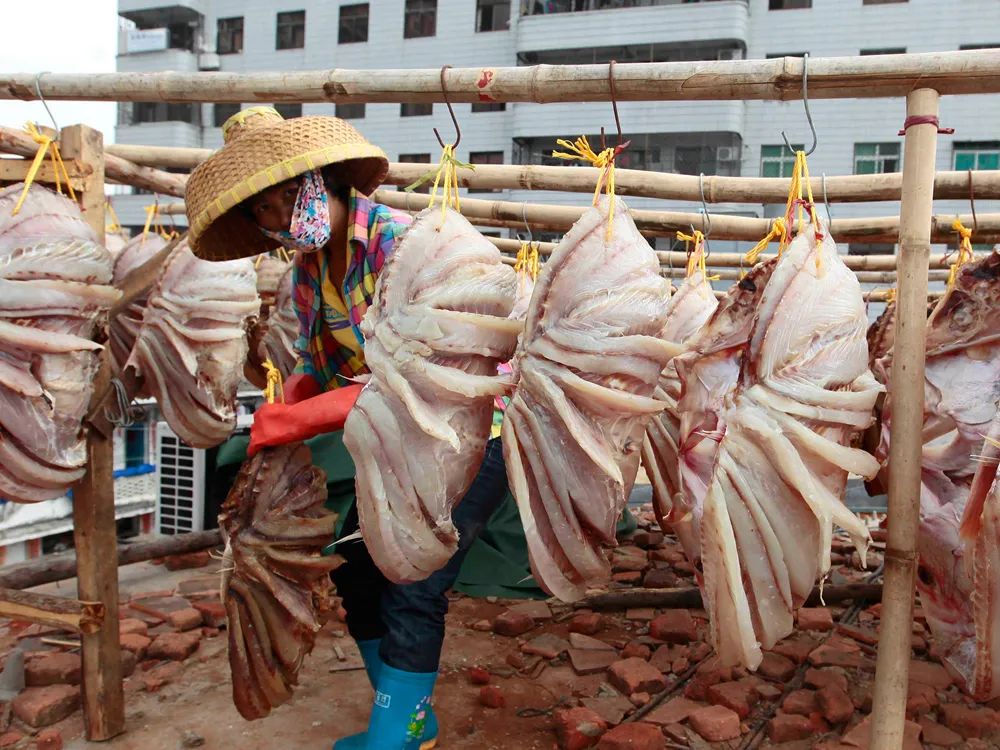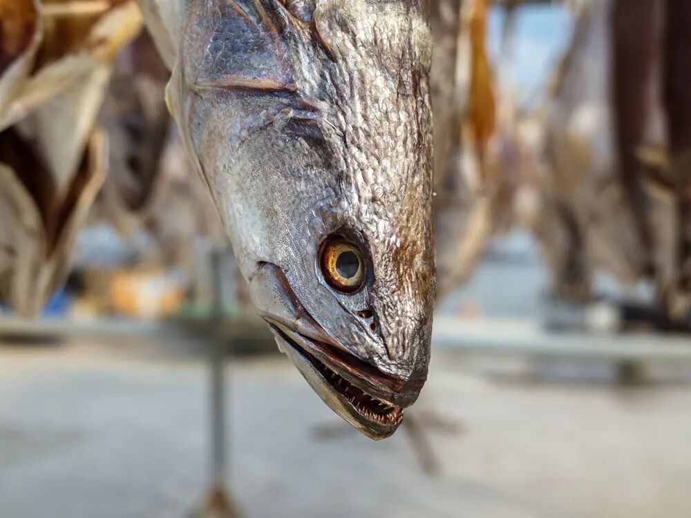 在海风吹拂下,咸鱼有了奇妙的风味转换。