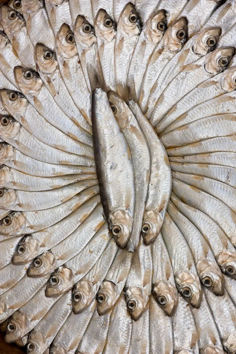 就这样,大海一次次奔来,咸鱼一天天遥望。尽管盐渍消磨了时间,回水却赋予了它们时间的魔法,最终有了令人生津的和谐风味。