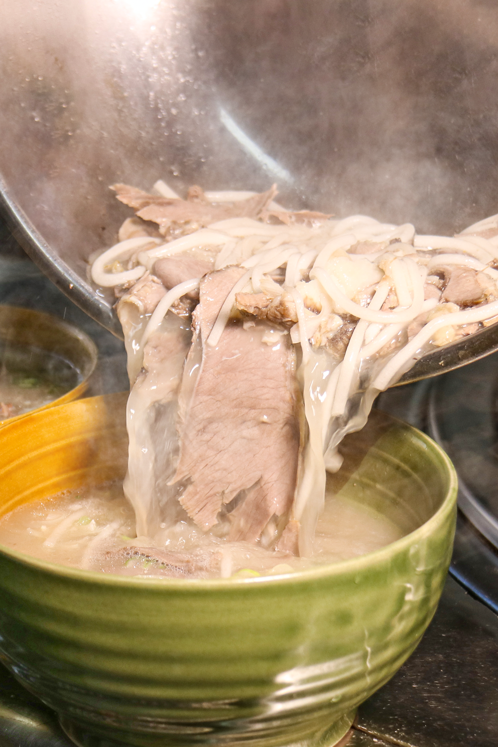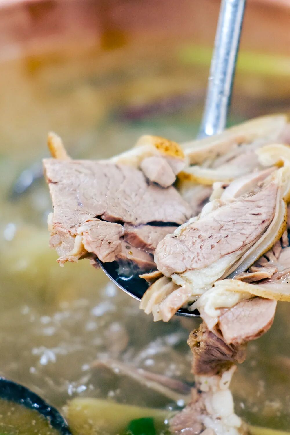 如此一锅羊肉,你一口下去,先是羊肉香气充盈口腔,细嫩得几乎入口即化;再嗦一口浸满汤汁的粗粉条,满满的滑溜绵香,完美的主食杀手。