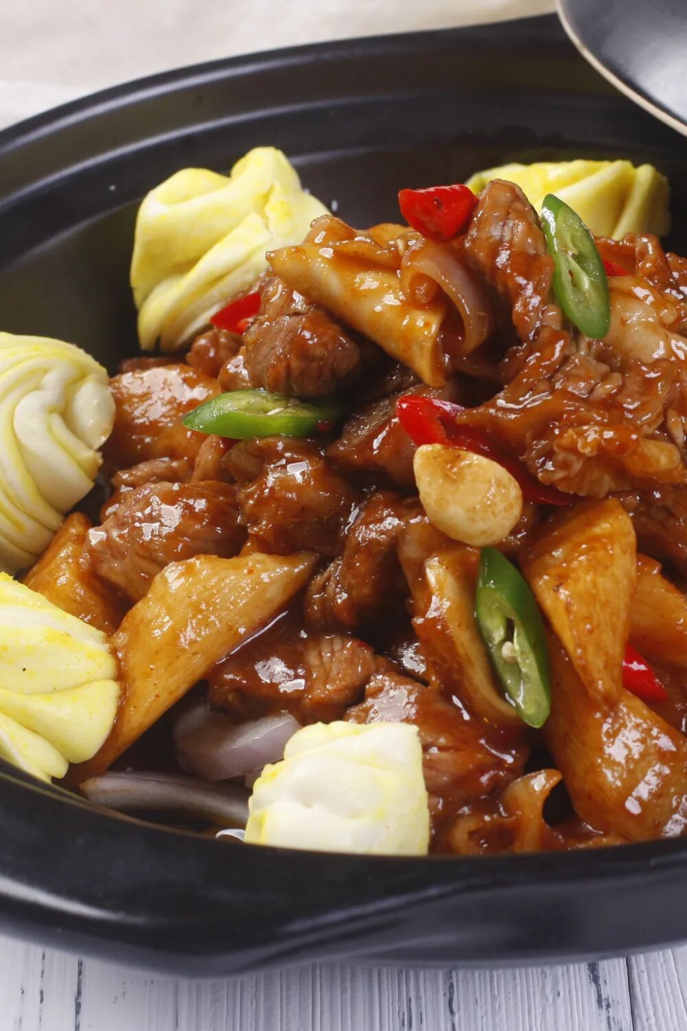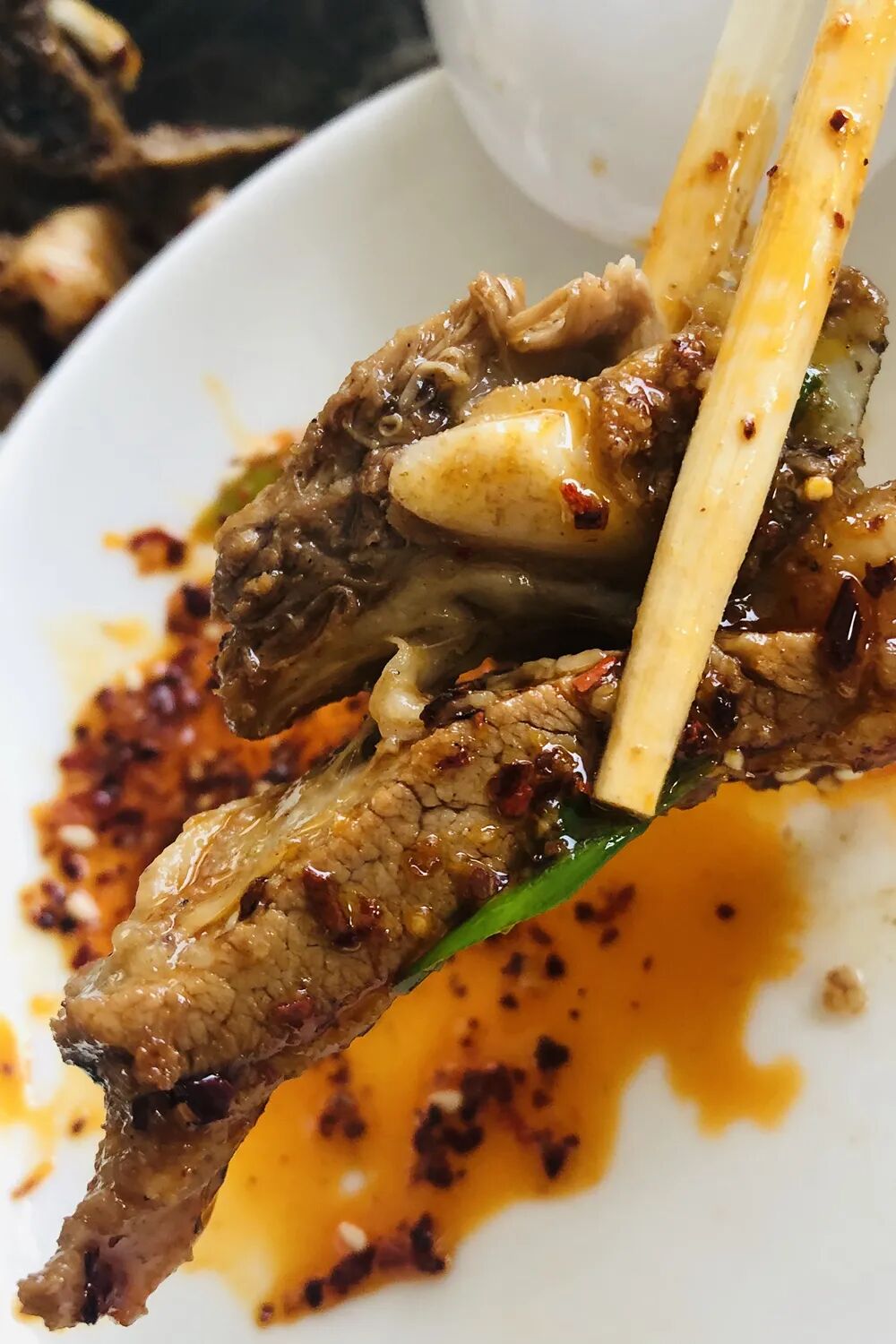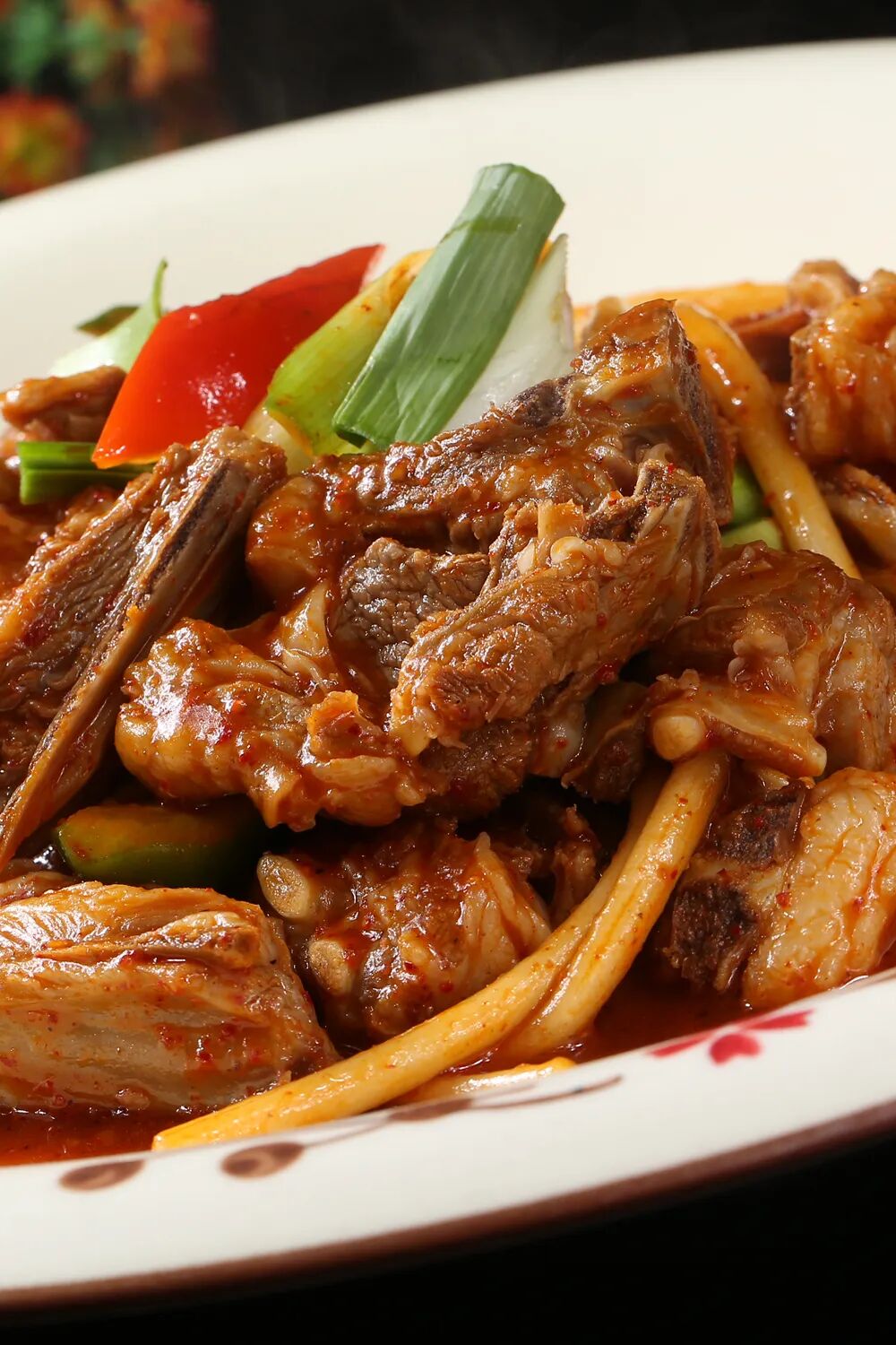 羊羔肉最好的部位,便是胸叉(羊前胸、两前腿之间),这里肥瘦相间、滋味丰满,随便怎么做都能让人魂牵梦萦。若你见到了黄焖胸叉,可千万别放过!