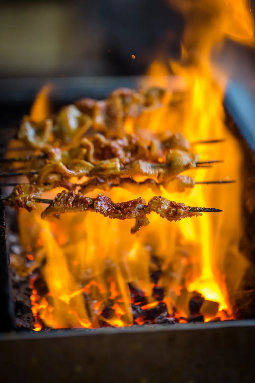 热辣辣的炭火,能激发羊肉喷香无比的油脂。