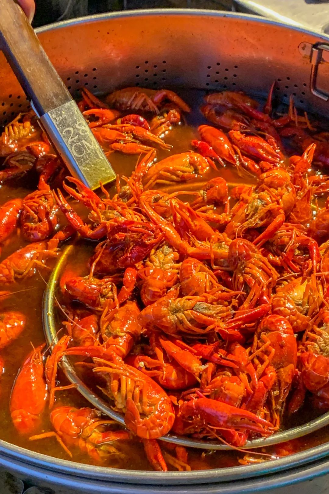 图1:卤虾上桌前入卤水加热,好剥又入味。摄影/阿朱