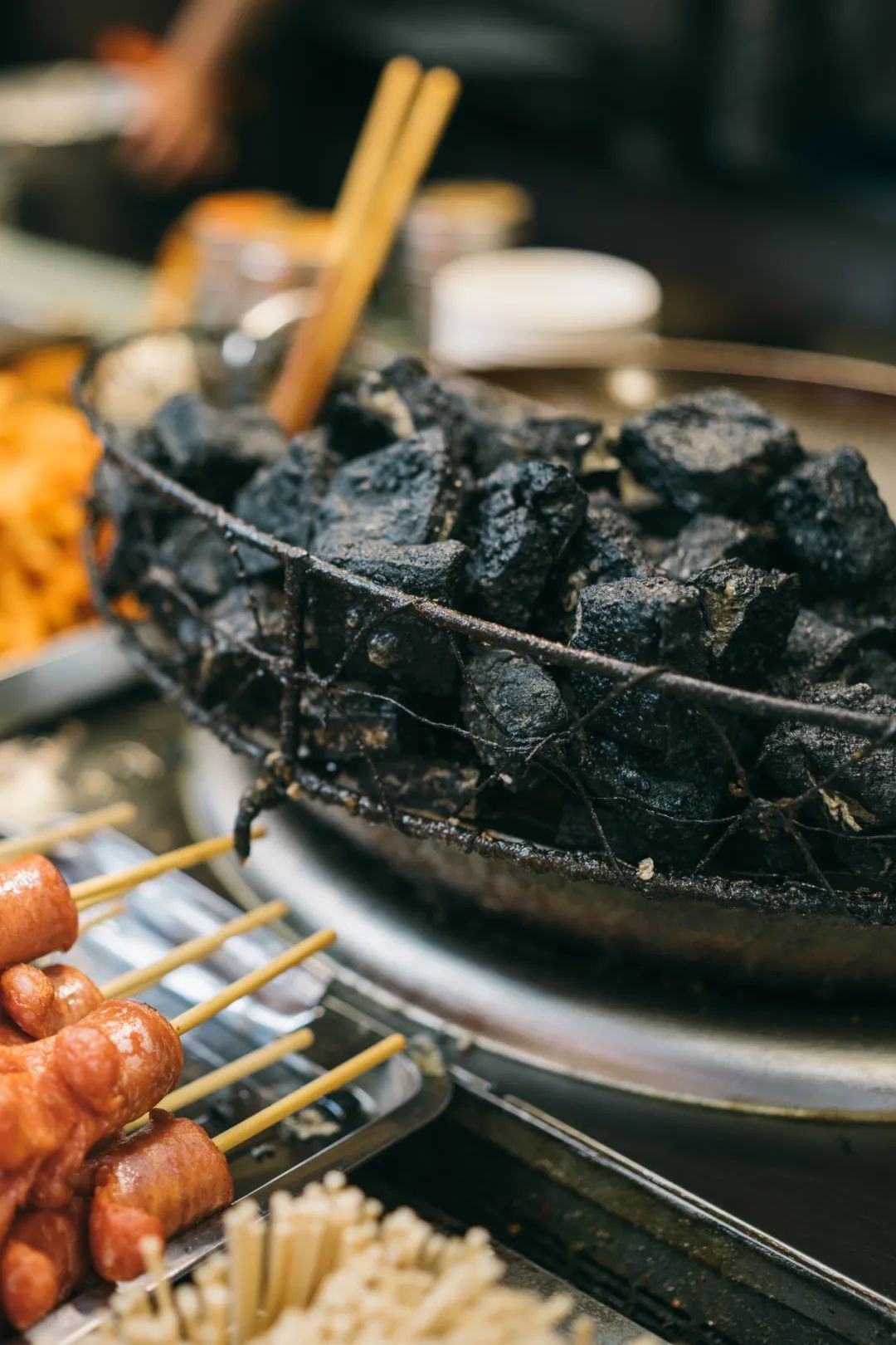 为此湘西人特意采用两套炉子:第一个炉子上,放布满小孔的铁板,用明火来烧,以便食材受热均匀;烤至七八成熟后,再上第二个小炭炉慢慢催熟,这才是烤。烧和烤的分离,令湘西小串独步武林。