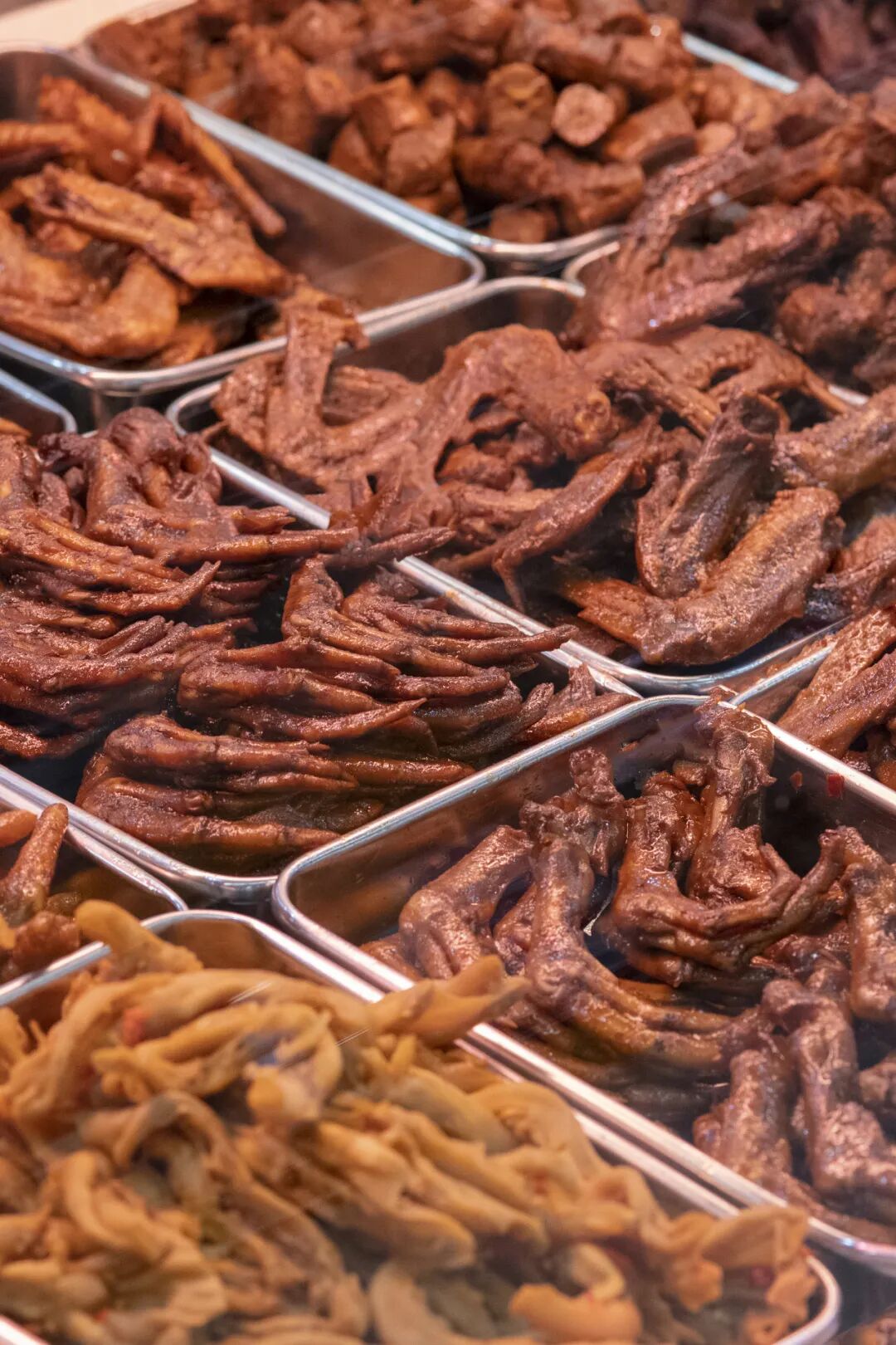 试问常德人到底有多爱吃鸭鸭?鸭脖、鸭头、鸭舌、鸭肠、鸭架子、鸭掌....从头到脚统统丢进秘制卤水熬制,便凑齐一桌常德鸭霸王。