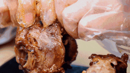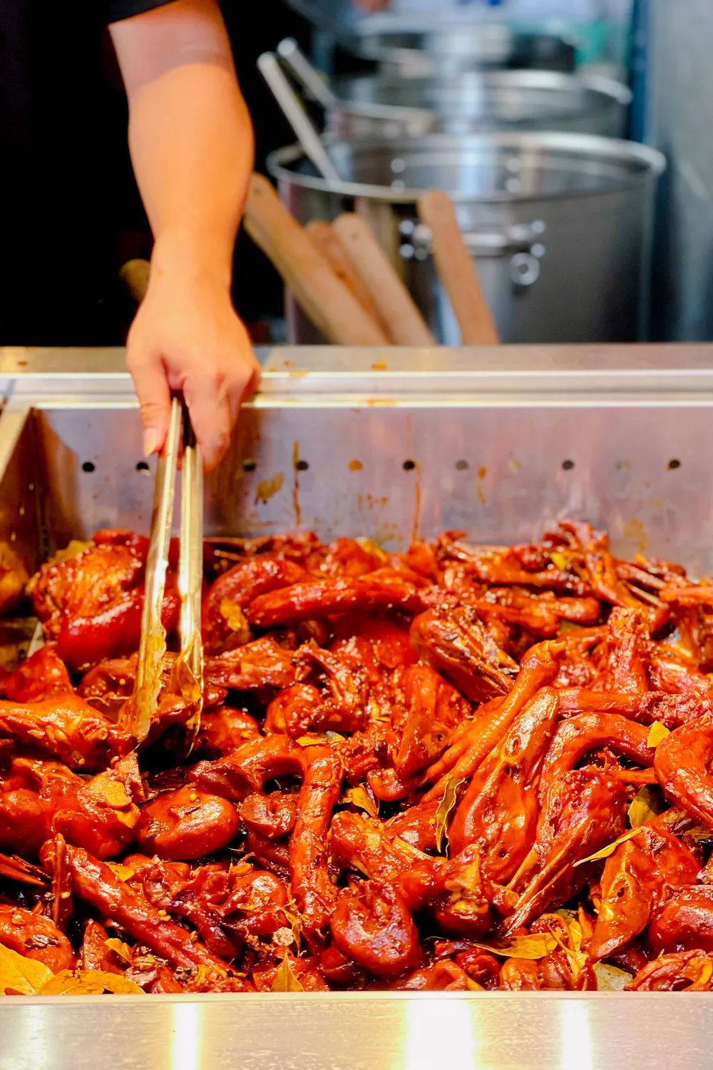 比鸭头兔头更狠的是鸭掌,因为鸭头兔头是撕着吃的,一点点啃,鸭掌你需要嗦干净,就像湖南人吃嗦螺一样,吸吮的时候同时动用了味觉和嗅觉,于是辣味兵分两路,一路饮马肠胃,火热滚烫,一路策马天灵,直接上头。