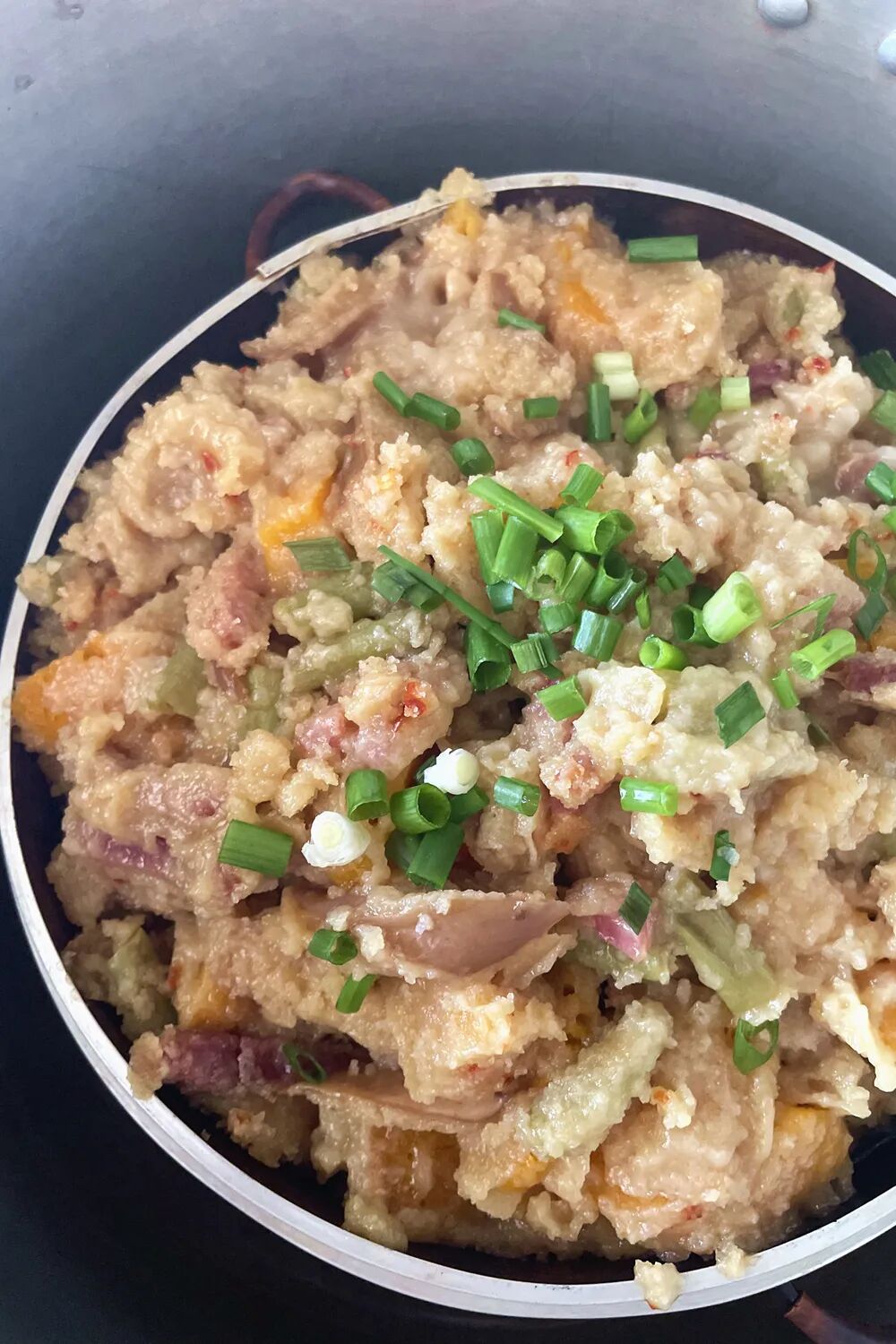 当这四个字映入眼帘的时候,大家会下意识地以为,这道来自衢州龙游的经典早餐非常清淡——类似北方的花卷,淡淡的葱香,面食自带的疏松口感,搭配上一碗暖胃的白粥,正是温馨而平淡的一餐?