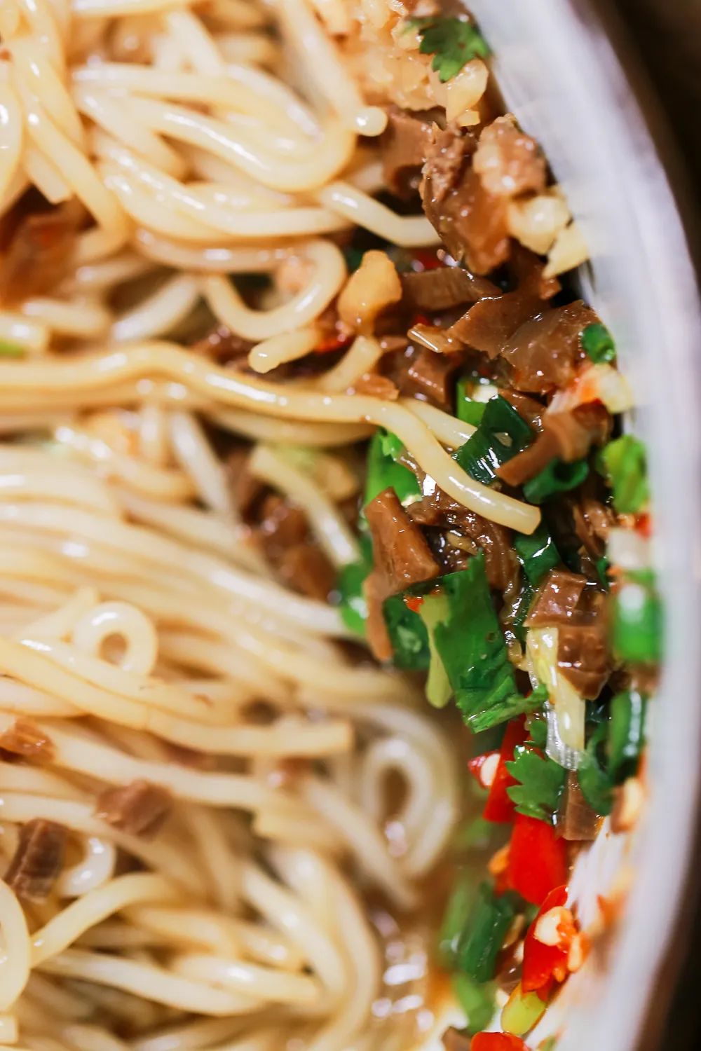 而衢州人吃炒粉干的辣度,几乎也不在江西朋友之下。除了在粉干旺火快炒时投入大量鲜辣椒以外,衢州人更有一手绝活:把吃完鸭头、鸭掌后的剩下的火辣卤汤,舀一勺拌进炒粉里吃,这才是地道的衢州味道。
