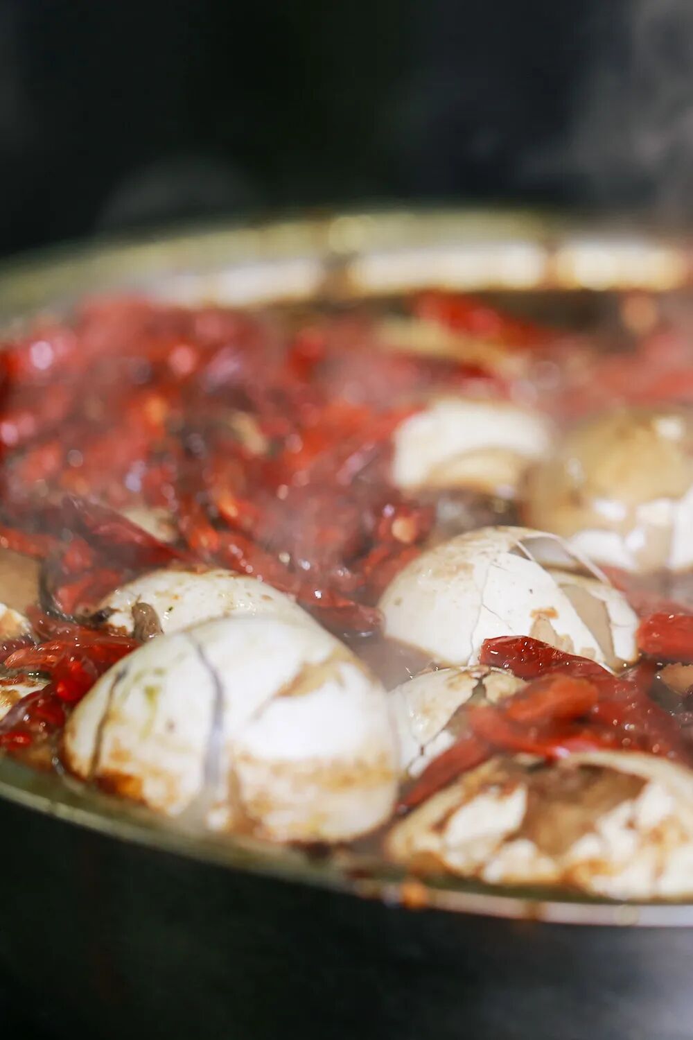 相比于四川兔头满眼辣椒,衢州的“三头一掌”——鸭头、兔头、鱼头和鸭掌,显得非常低调随和。腌制鸭头和兔头的卤水黑漆漆一桶,散发着药味,就像中药铺子里煮着大锅的凉茶,以为是清凉去火的——没想到家家秘制的草本精华都只为了一件事:提升辣度。
