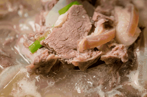 用羊骨和羊肉一起慢慢熬煮至汤浓肉酥,奶白色的汤,香气浓郁,口感鲜而不腻。若是再搭配一盘白切羊肉,大口喝汤,大口吃肉,那真是“打耳光也不肯放”呀(形容东西好吃)!