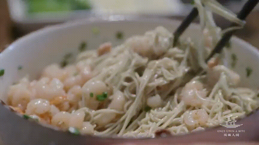 虾仁的爽滑Q弹,虾籽的鲜甜,与虾脑的喷香完美地在一碗面中融合,江南的至鲜就在这一瞬间被揽入舌尖。吃完极鲜的面,若是再喝上一碗清汤,那便真是原汤化原食,鲜是鲜的嘞!