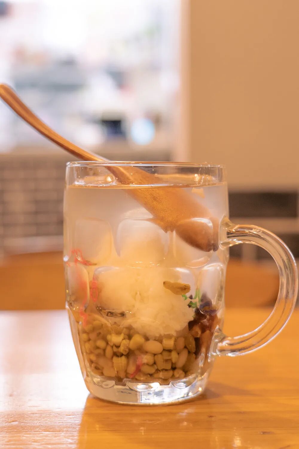 初尝绿豆汤,冰凉沁爽的薄荷水滑入咽喉,加倍的清凉从舌尖蔓延至全身,瞬间理解了何为“一口解暑”。同时,丰富的配料也在不断赋予食客们新的惊喜。清香朴素的绿豆和绵软甜糯的红豆巧妙中和,糯米饭更是颇有嚼劲儿。
