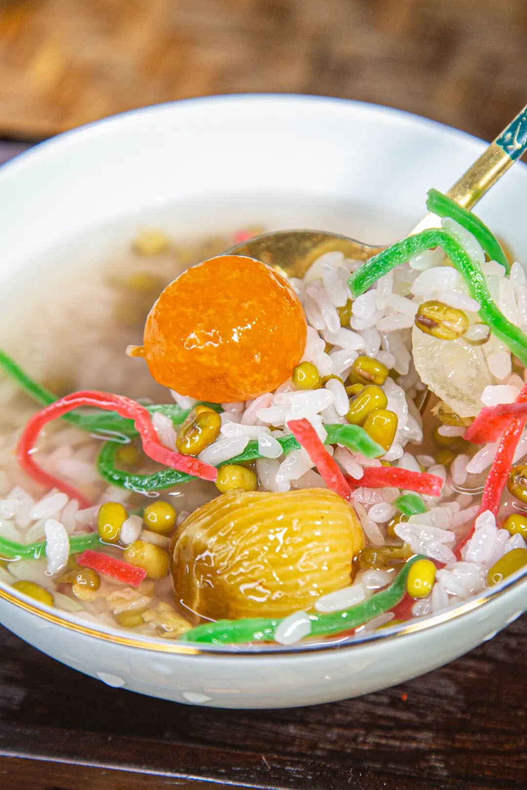 五彩缤纷的苏式绿豆汤,更像一碗“绿豆粥”。
