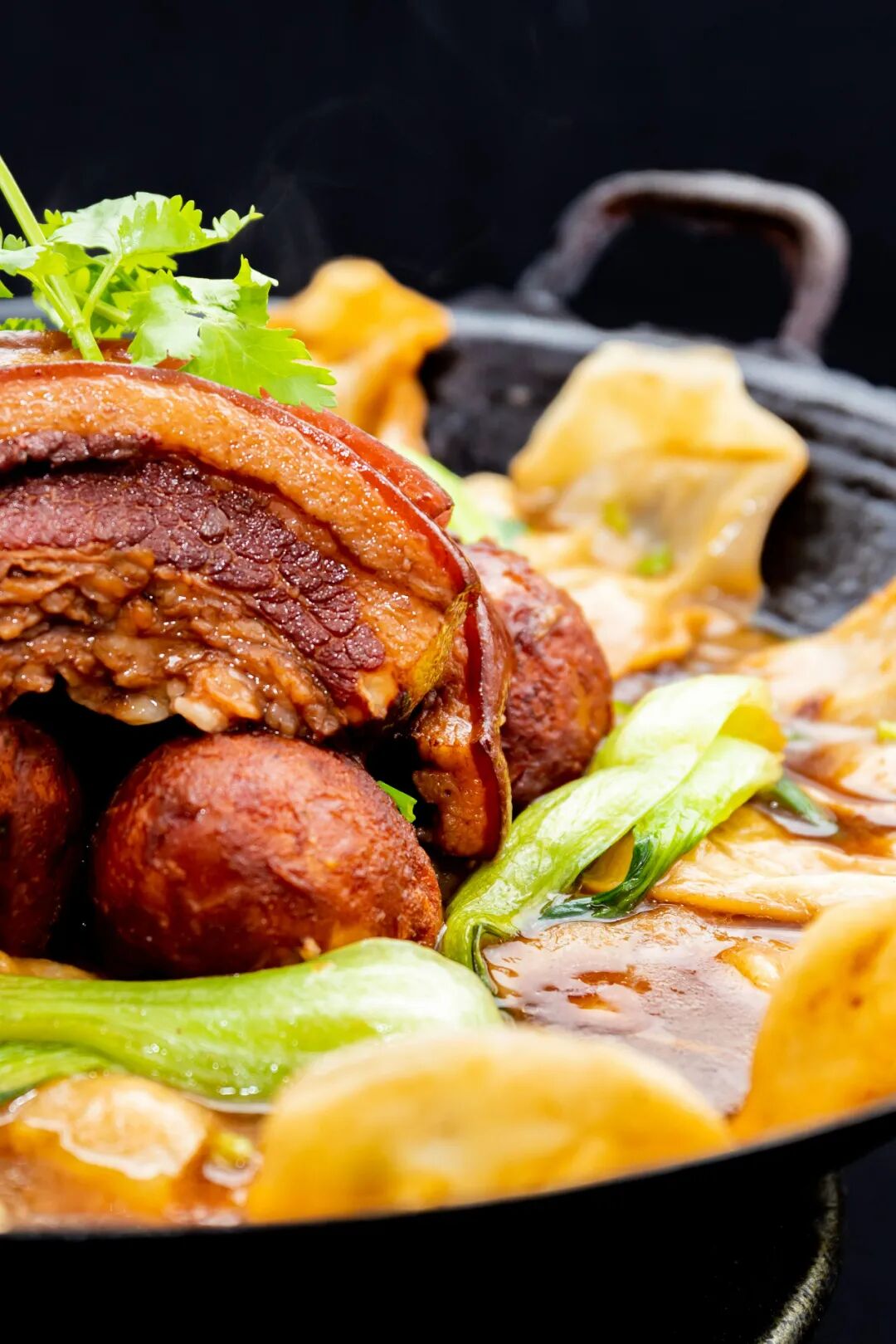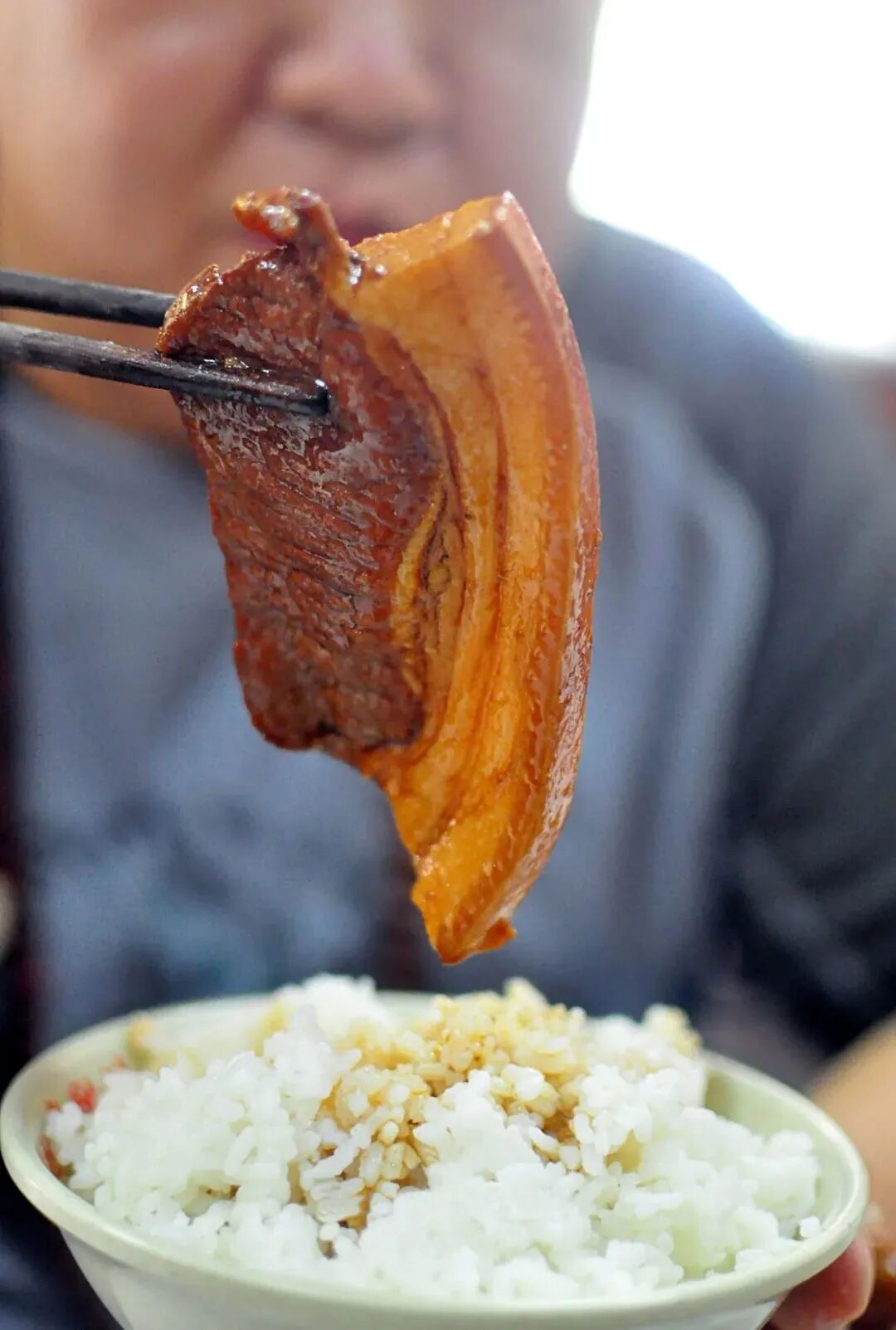 浓油赤酱的把子肉,配菜丰富,营养全面。