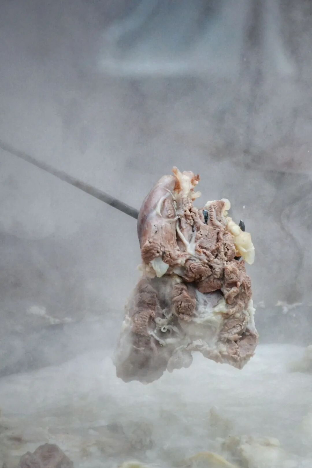 羊汤最地道的吃法,是要掰一块刚出炉的烧饼泡进去,烧饼部分吸满鲜汤,部分保留脆的口感,然后连汤带饼一起吞下,才能真正品尝到伏羊的美妙。