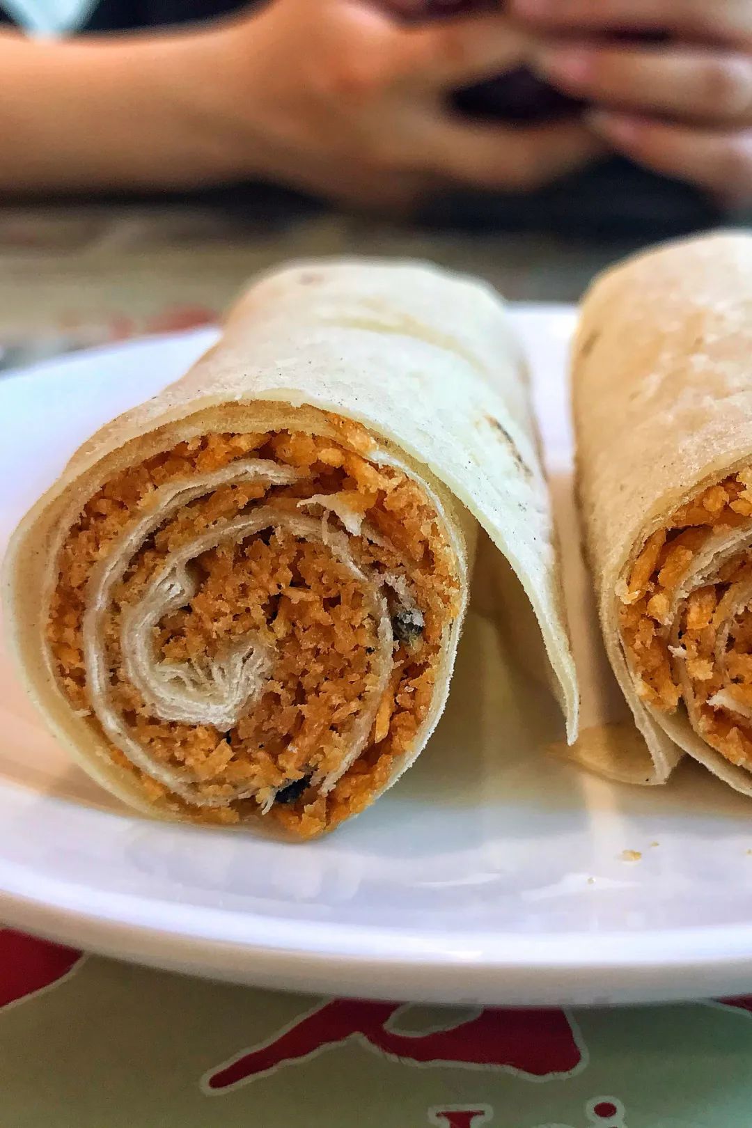 徐州人还深谙碳水+碳水=奇迹的神奇公式,烙馍卷馓子便是如此,心里脆,外面软,奇妙的口感令人上瘾。