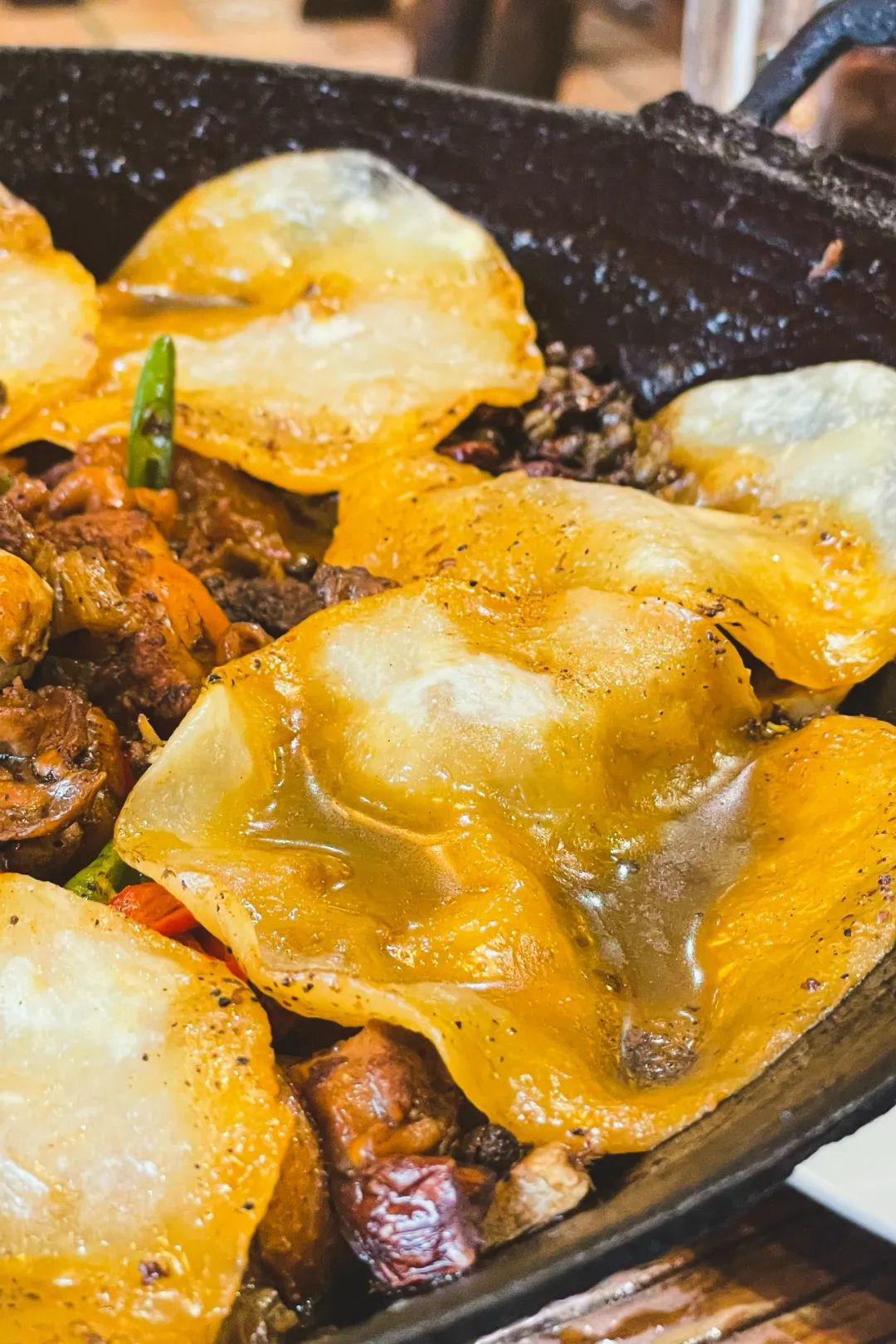 本地特色小炒羊肉炒鸡蛋,由于山羊油少略柴,鸡蛋能增添嫩滑口感。一定要用大火爆炒,葱花辣椒放足,再趁热卷在烙馍里,那鲜辣爽滑的滋味,别提多过瘾了!