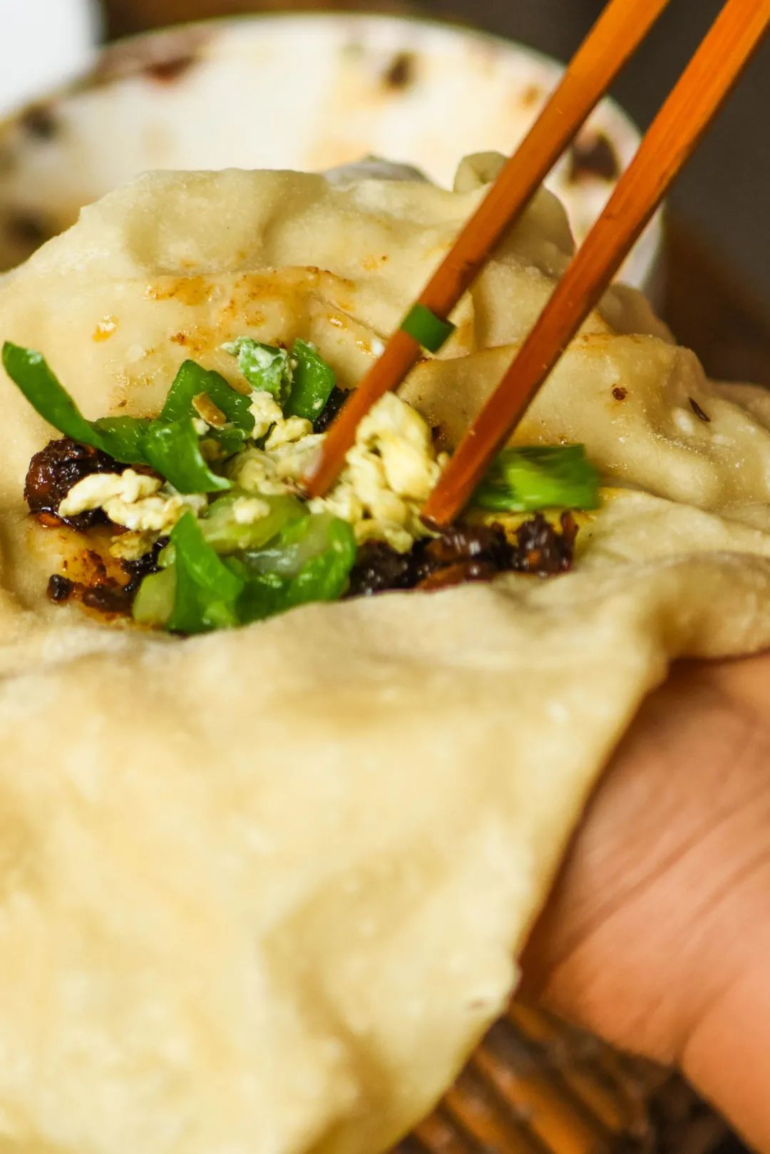 烙馍卷羊肉炒鸡蛋,豪华顶配。