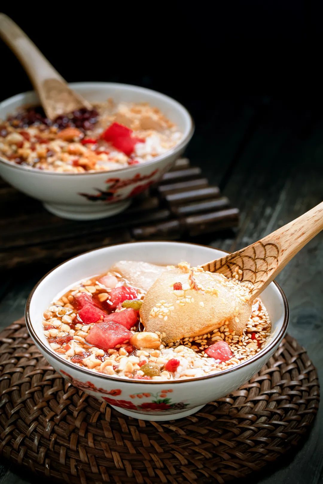 在美食江湖里,以牛肉面闻名天下的甘肃兰州,更有一个保留级的美食——牛奶鸡蛋醪糟。这种混合着牛奶,尽可能多地掺入各种坚果的甜品,既展现了西北丰饶的物产,又写满了浓浓的西北风格。