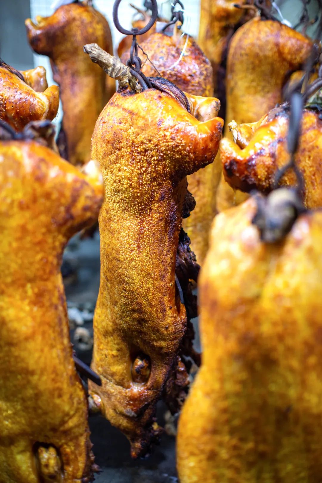 一路向南,乡土气息浓郁的山东,同样也是养猪与吃猪的大省。在山东潍坊,朝天锅的大骨老汤中咕嘟着猪的各色下水。大家围锅而坐,吃饼卷肉,尽显山东大汉的豪爽。到了省会济南,章丘的黄家烤肉将两三百斤的肥猪整只塞入炉膛,一定能够满足你对“浩克山东”的一切合理想象。就算是上不得台面的大肠,也被孔孟之乡“食不厌精、脍不厌细”的讲究劲儿所感化,成了一道五味俱全的九转大肠,尽显鲁菜的调味精髓。