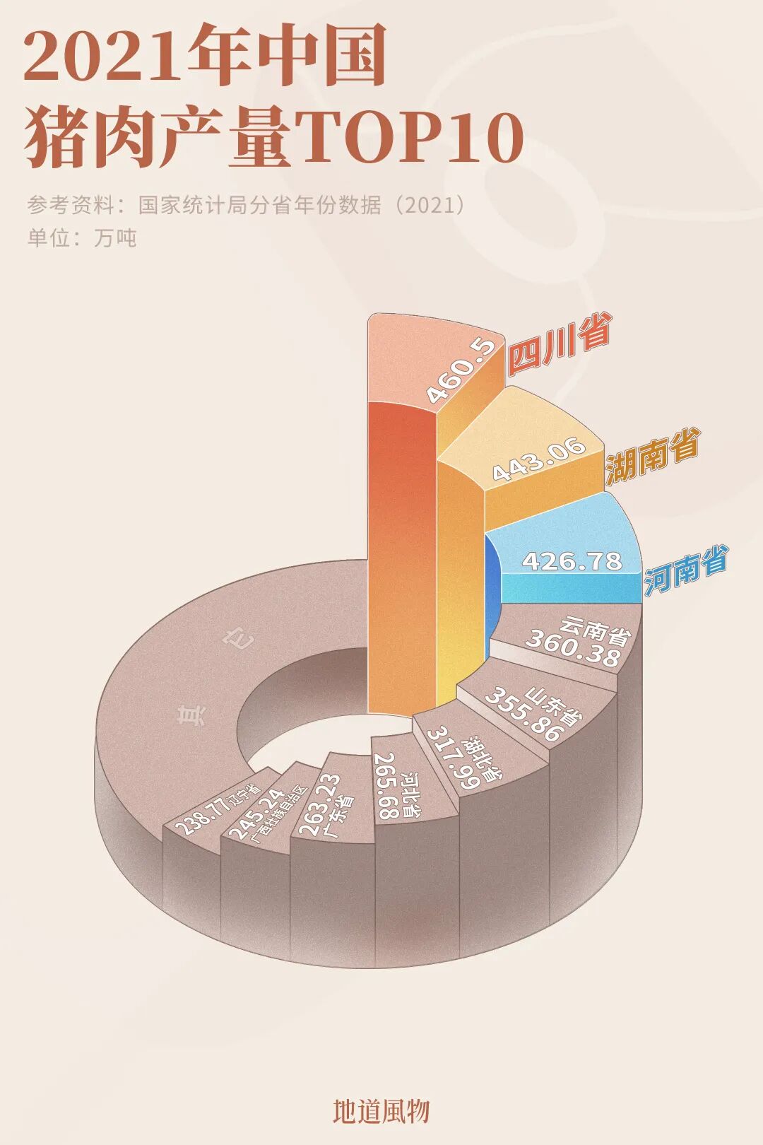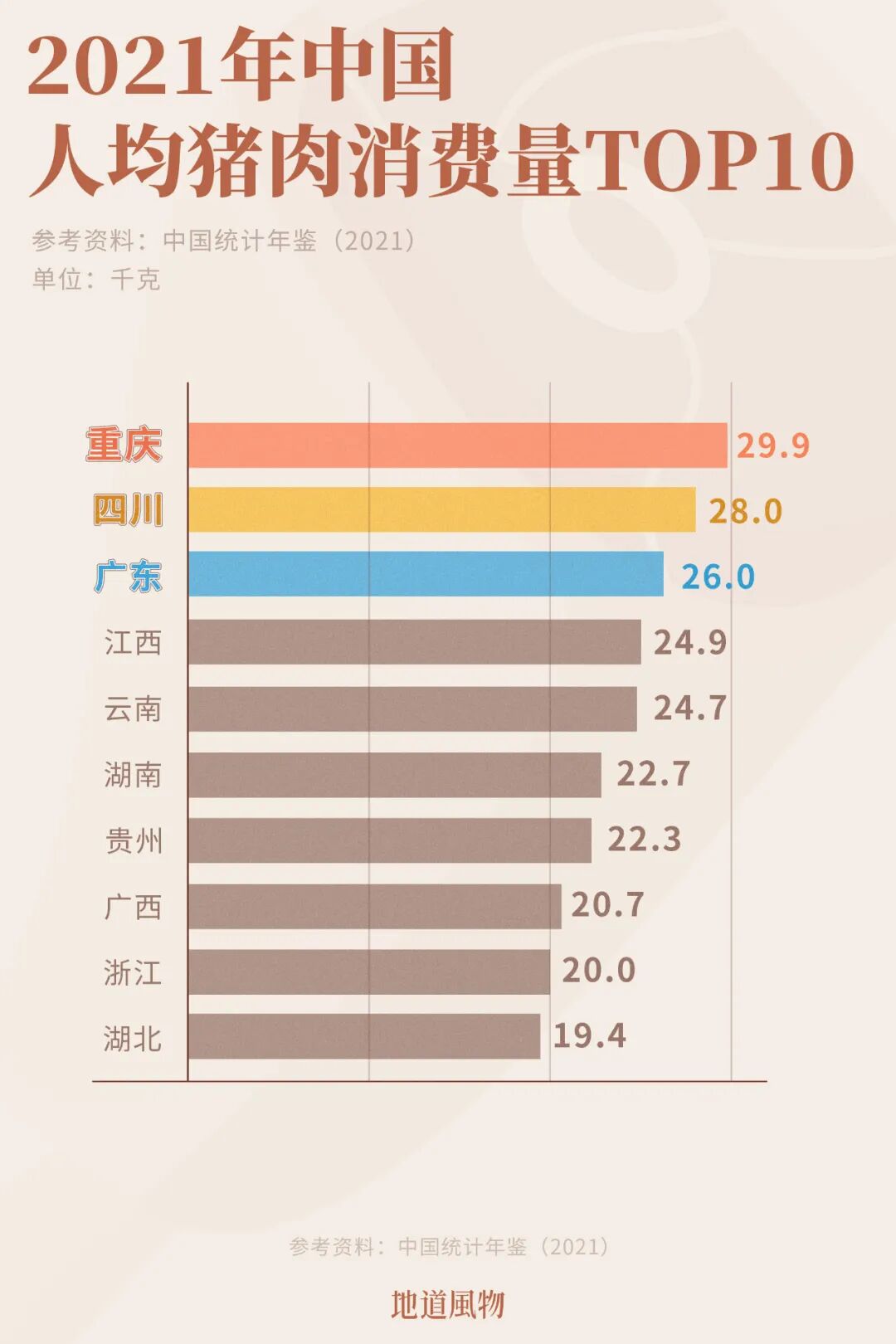 这些省份也大多是我国排名靠前的猪肉产量大省,真正达成了省区范围内的自产自销。但就算是并不以养猪见长的江浙地区,也用一道闻名全国的东坡肉,宣示着自己对于猪肉的热爱。