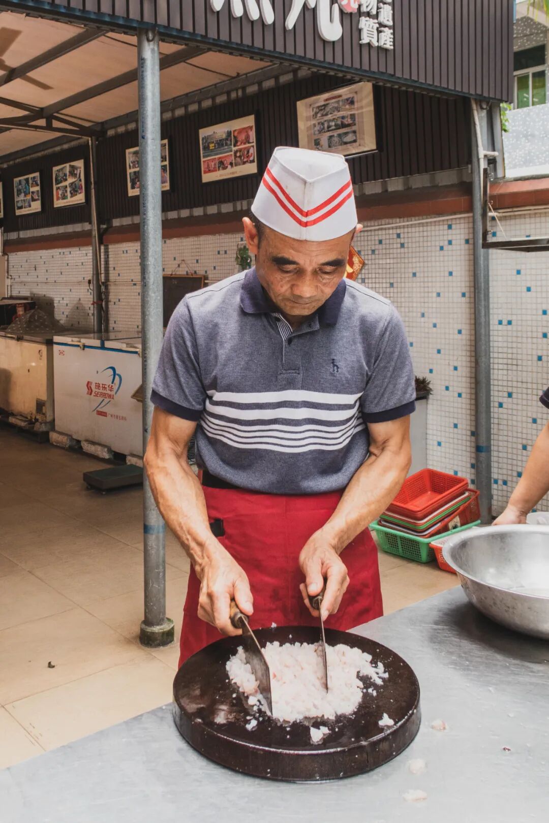 鲢草鱼丸味清淡,肉松软;鳗鲨鱼丸海味浓、弹性足,能满足不同人群的口感需求,但做法都不离“剖鱼剔骨,去皮刮肉,剁肉成泥,打浆搅拌”的十六字诀。