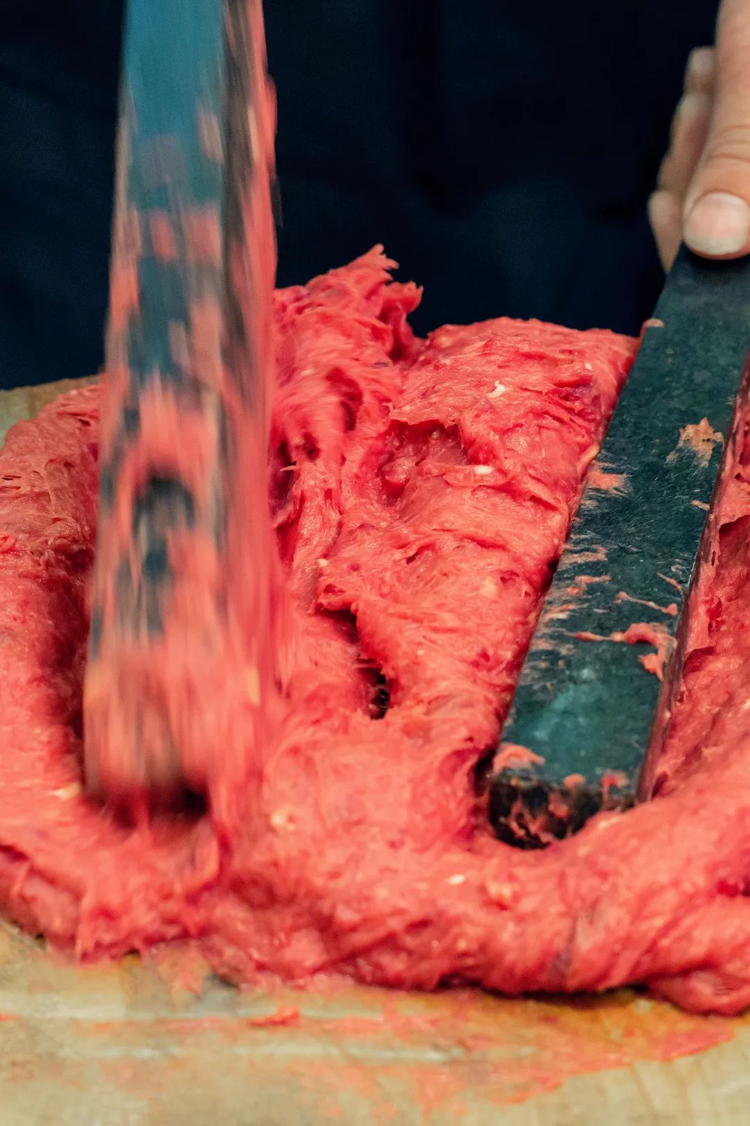 潮汕牛肉丸为何会有如此惊艳的口感?第一是因为使用了未经冷冻的新鲜牛肉,第二在于坚持人工手打。牛肉在捶成肉浆的过程中,肌肉蛋白被抻长,肌肉纤维却不拉断,才造成了如此独特的口感。