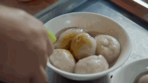 番薯丸就比较好玩了。看到这个名字,初来福建的人都会觉得这是个甜丝丝的小吃,多半是炸的,要是煮的估计就跟酒酿小圆子什么的差不多。端上桌,发现丸子汤里飘着葱花香菜,食客已经感到事情不太简单;咬一口,肉馅儿的!嚼着格外筋道、比糯米还细腻的番薯粉皮,你就忽然明白了福建人做鱼丸、鱼面为什么也离不开地瓜粉。