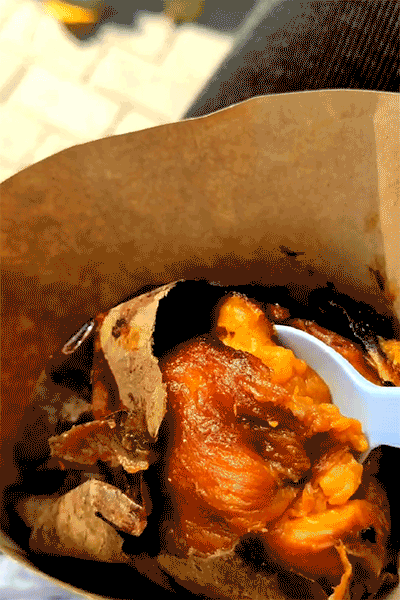热腾腾的烤红薯,小心撕开外皮,香甜和温暖扑面而来。软糯甘甜的薯肉,流着油亮亮的蜜,咬一口,是从舌尖到胃满满的幸福感。