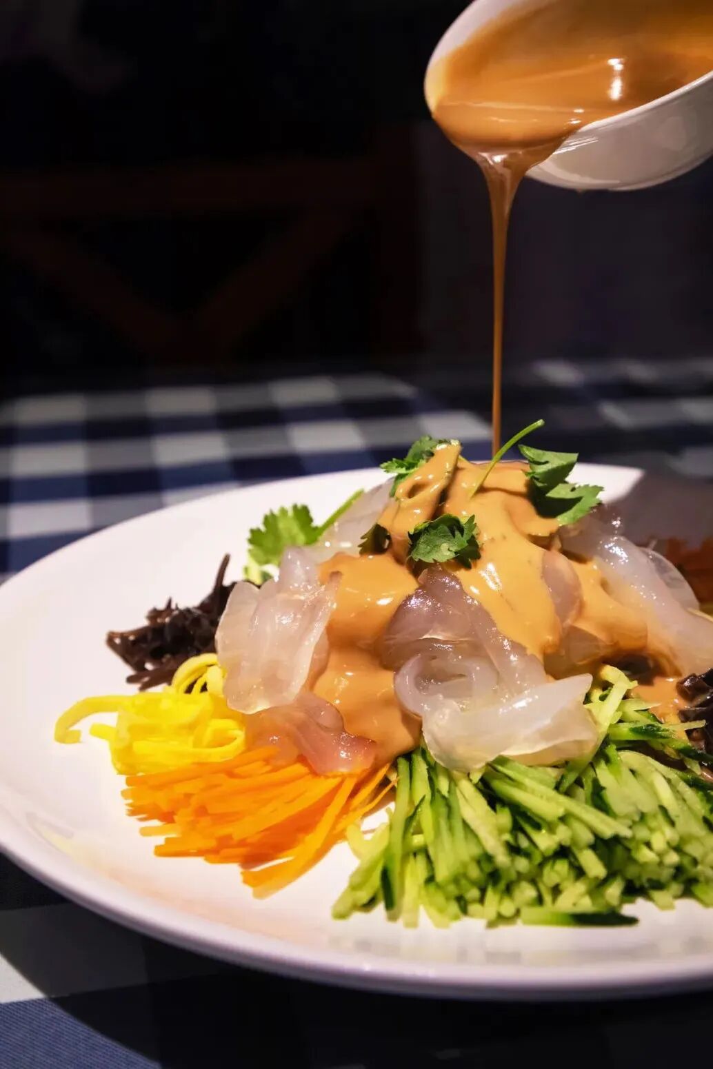 用鸡蓉或蛋液淋出图案,就是仪式感加倍的太极护国菜。