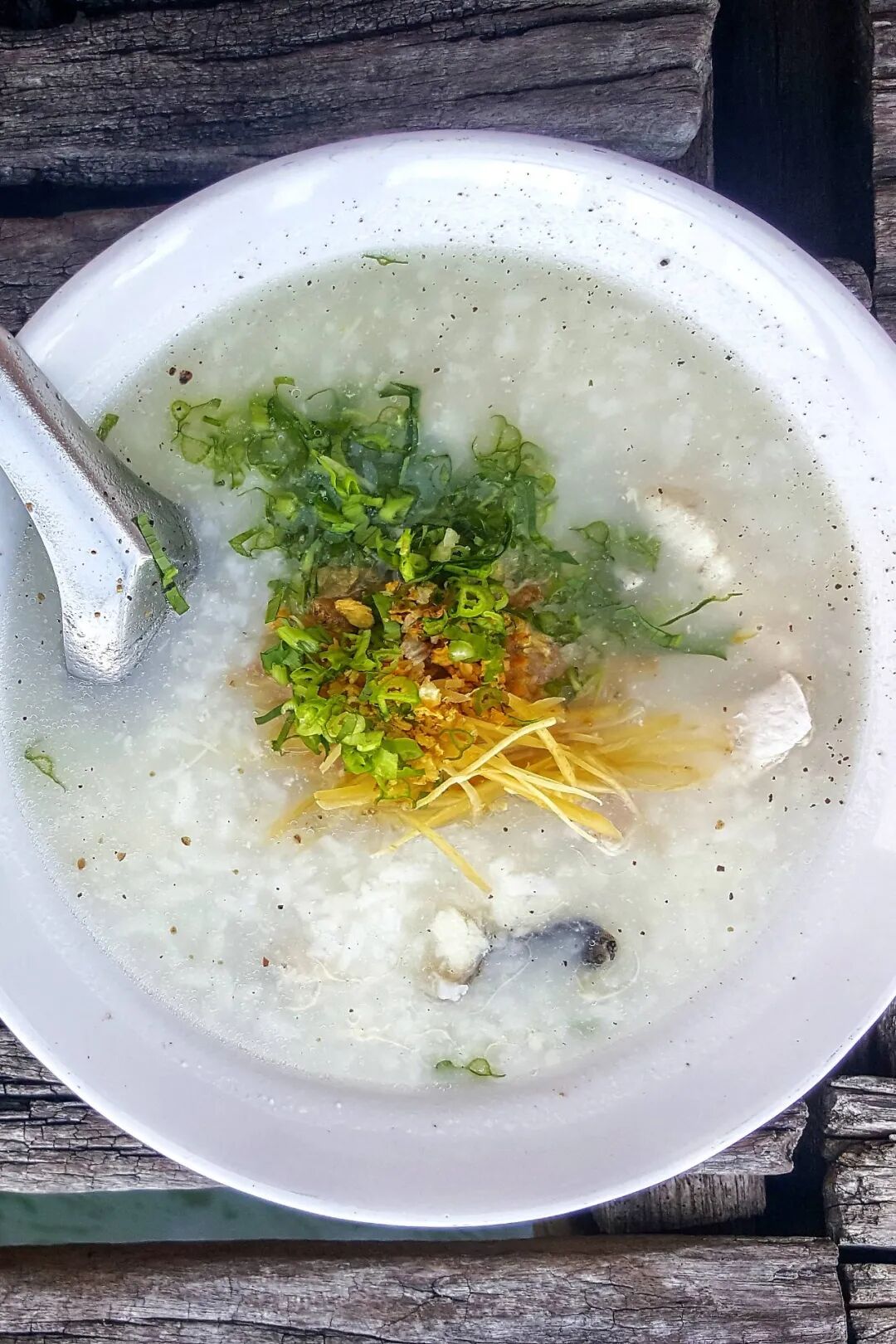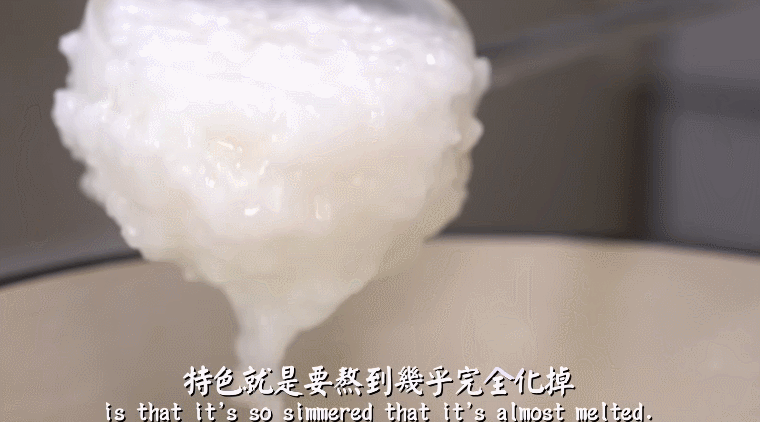 “广东粥”最大的特点,就是煮得看不见米为止,把支链淀粉的精华全都打散到汤里,是下南洋的先民,将带回来的粤菜当地化的“分子料理”。