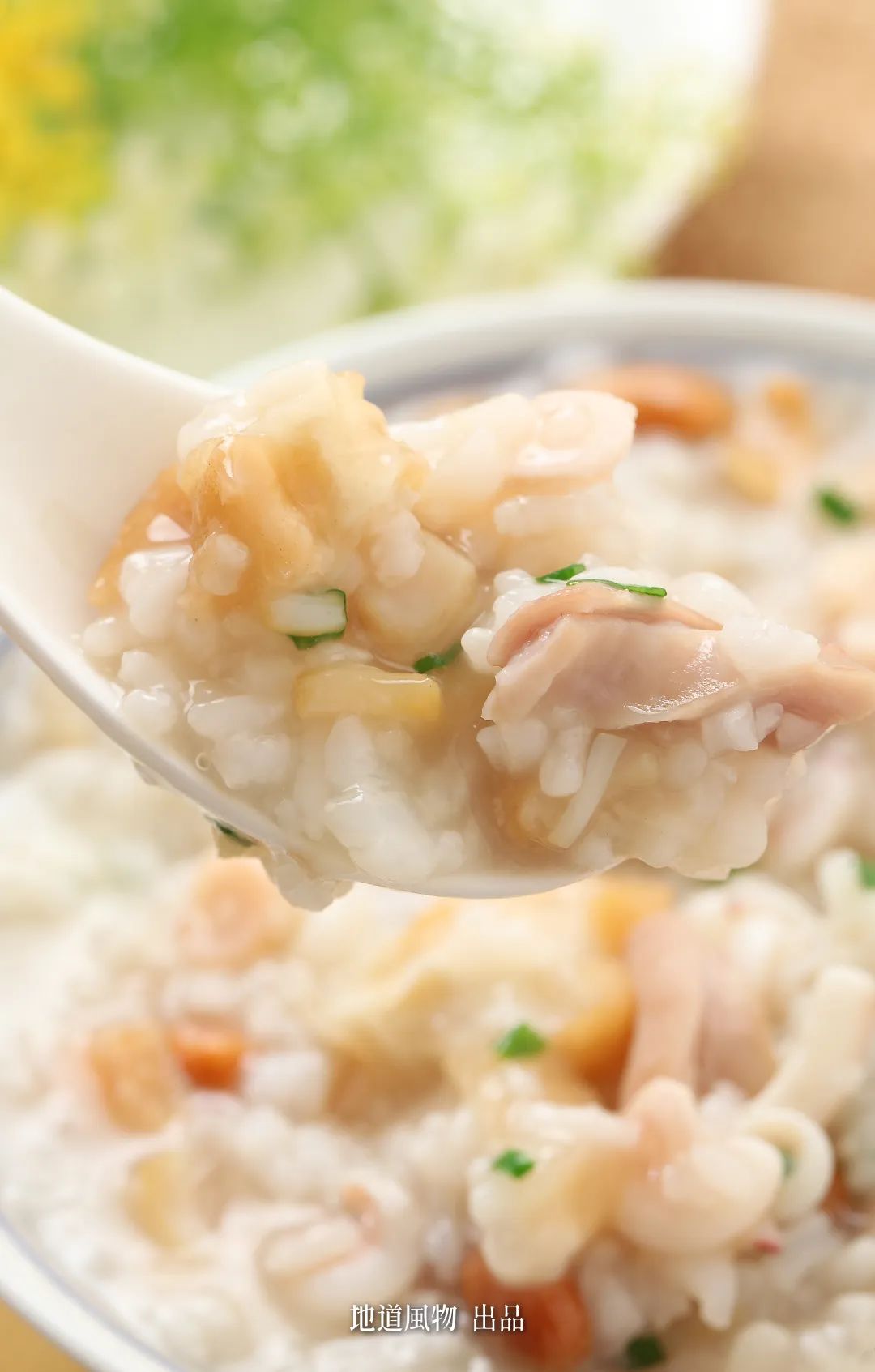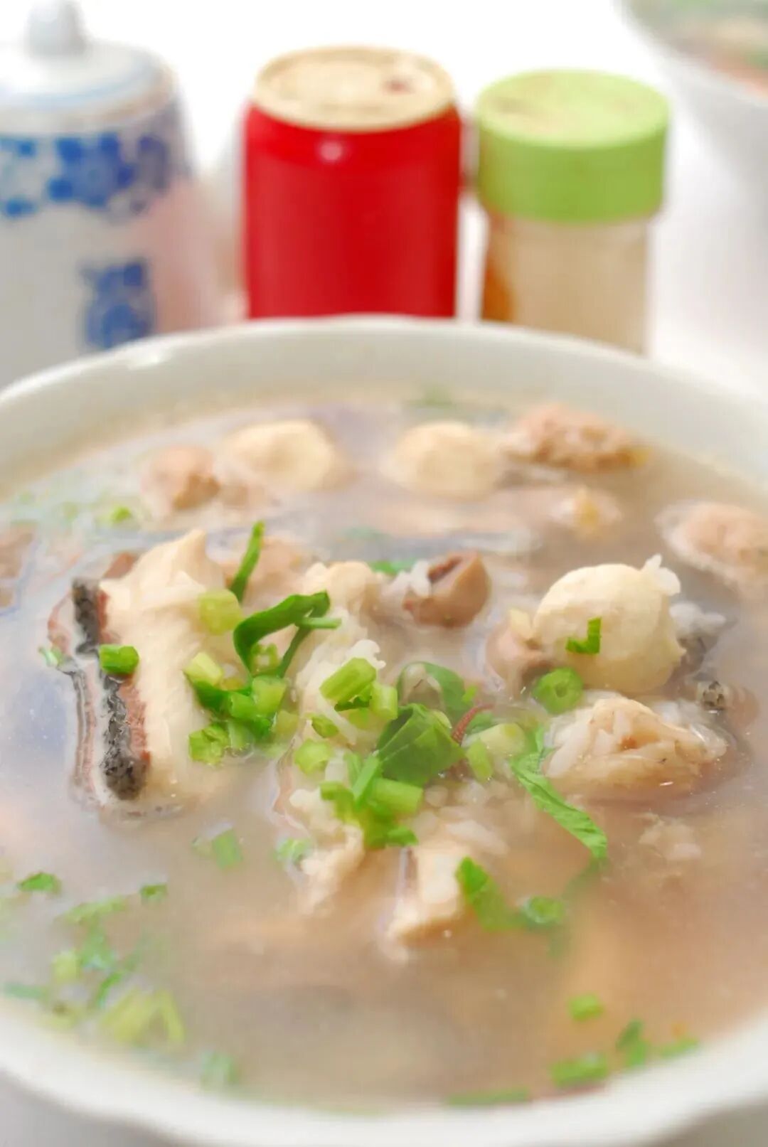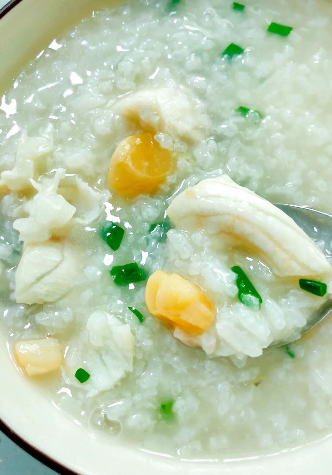 闽西龙岩的瑶柱深海鱼片粥。