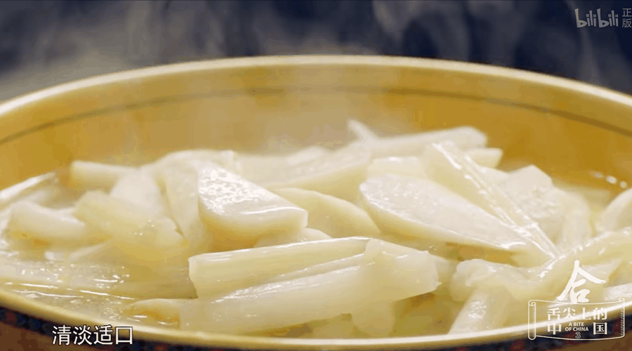 四川大厨要捧出一道国宴汤菜天花板——开水白菜。汤清如水,中间汪着一颗细嫩的白菜心。别看它表面清淡,实际上融进了猪骨火腿鸡架的精华,又要用猪肉蓉、鸡肉蓉反复扫汤,吸附杂质的同时增香提鲜,实在是吊汤的顶级功夫,轻抿一口,就是超乎想象的美味。