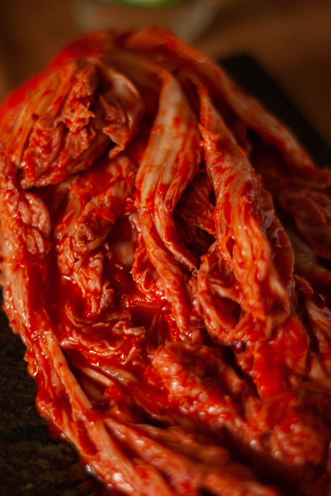 受延边地区影响,辣白菜也是东北的一大特色。辣椒面、姜蒜和虾酱提供了层次丰富的咸辣味,苹果和梨则提供一抹轻快的甜。明艳靓丽的辣白菜看着就特别有食欲,用来炒五花肉、拌饭、熬汤,都是一等一的香辣酸爽。