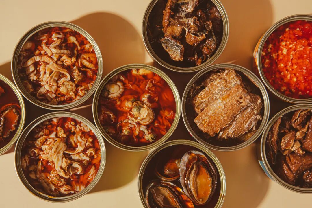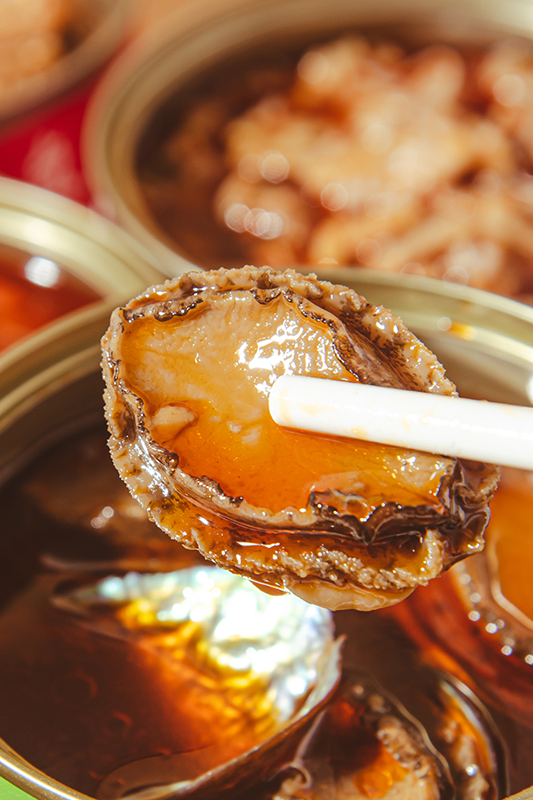 另外不得不提的还有大连的海鲜罐头。大连处于冷暖流交界地,有丰富的鲍鱼、海参、海胆、黄花鱼、河豚等水产资源。大连的鲍鱼常年生活在冷、暖水交汇处,不仅个头更大,鲜味物质积累也更丰厚,弹牙且满口鲜,是不可多得的北国珍品。制霸全国的辽参,肉质饱满,名震天下。上面两个珍品除了鲜吃,通常也会被做成干货,或者罐头类型的产品食用。