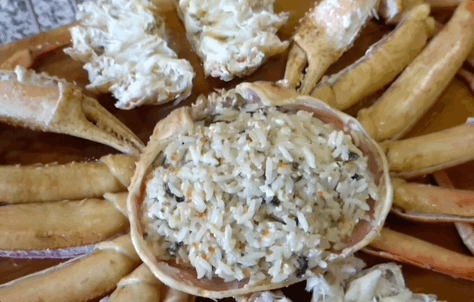 但即便是再生猛的俄罗斯海鲜,到了延边,也要入乡随俗本土化,除了清蒸、炭烤这种原始做法,帝王蟹在延边还会被做成朝鲜族风味的海苔拌饭,大扇贝会跟方便面一起,做成红彤彤的辣炒口味。
