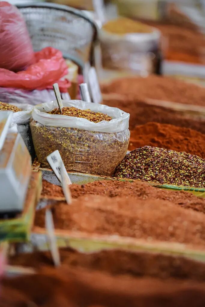 上面那些辣椒面,很少用来直接吃,通常会跟其他调味料组合成不同的辣椒调味粉,比如做成不同口味的烧烤蘸料。如果你去延边吃烧烤,你会发现桌子上会摆着3个干料碟,1个湿料碟,用来配合不同的烤肉。除了一个不辣料,剩下三个都是用不同的辣椒粉制作而成。